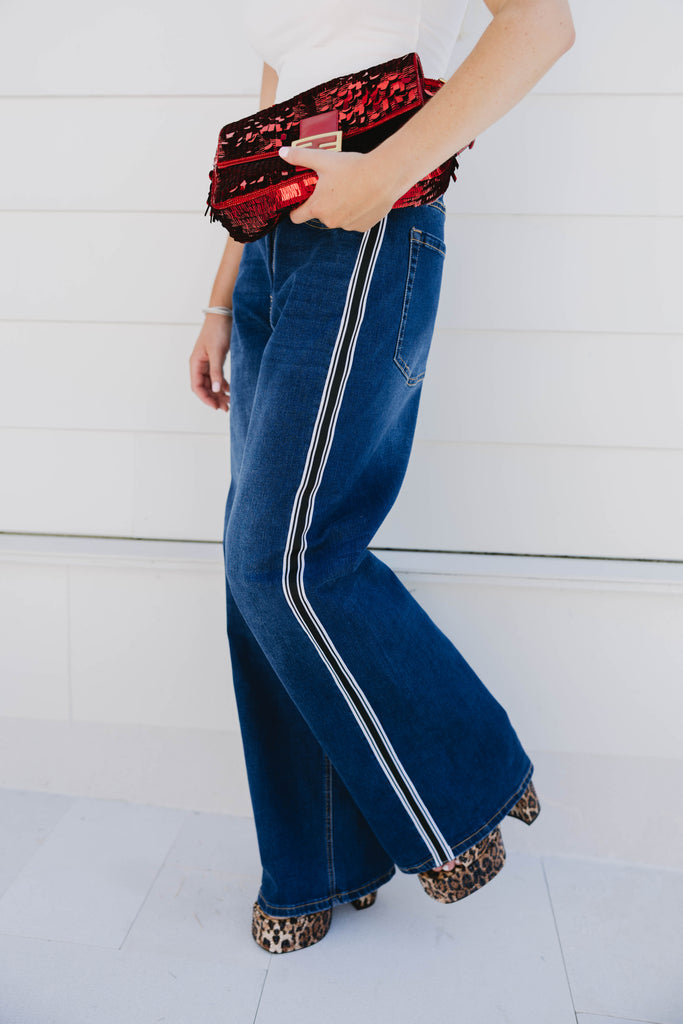 Cross Over Slouch Denim Jeans - Stone Wash Blue