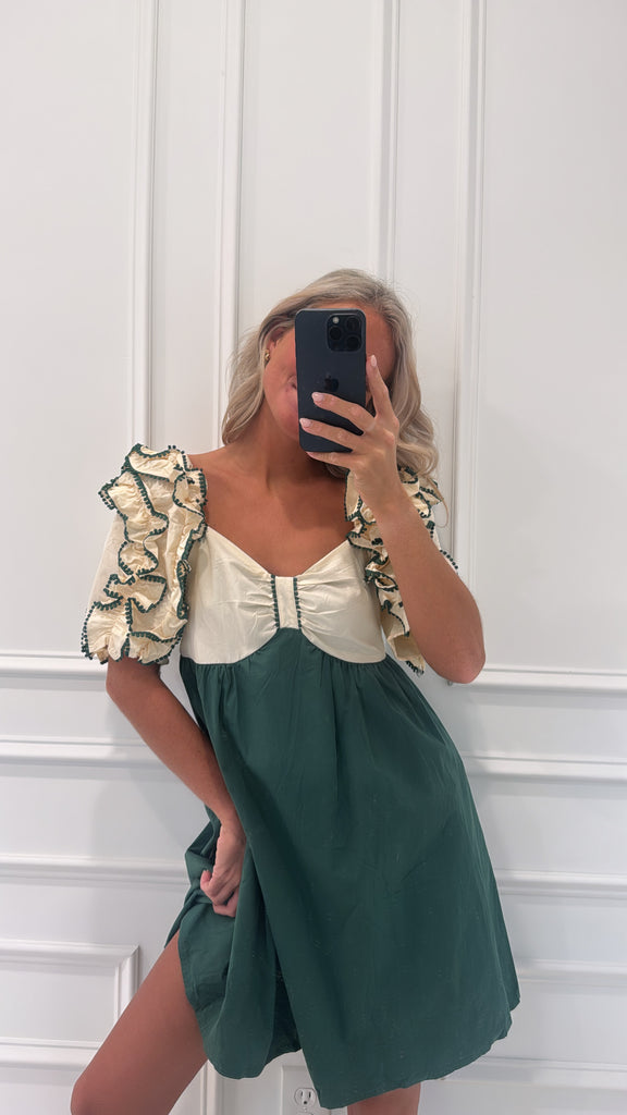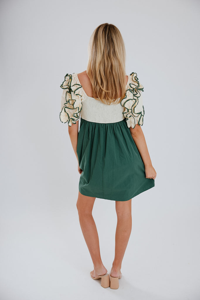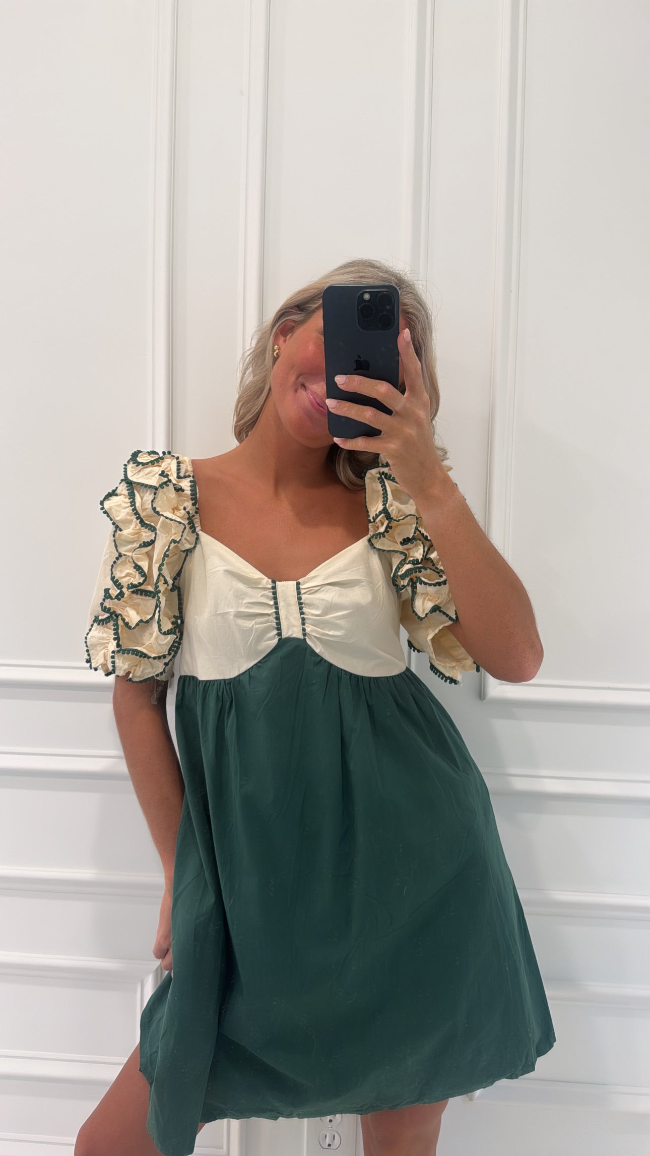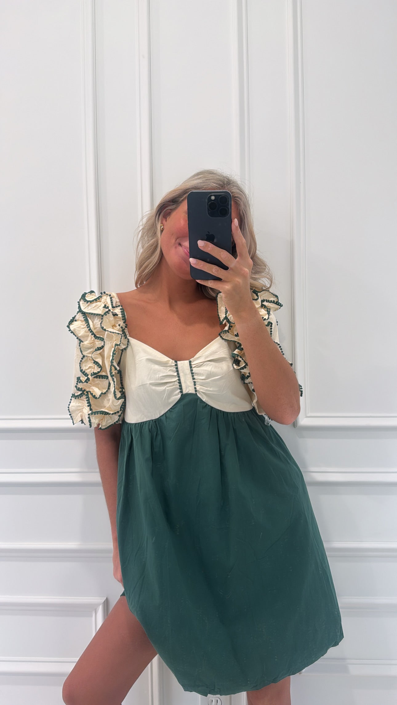 Get ready to turn heads in this playful Day By Day Mini Dress! The bold color block design and charming bow shape bust will have you standing out from the crowd. With a fun contrast ruffle trim, this mini dress is perfect for creating unforgettable moments.