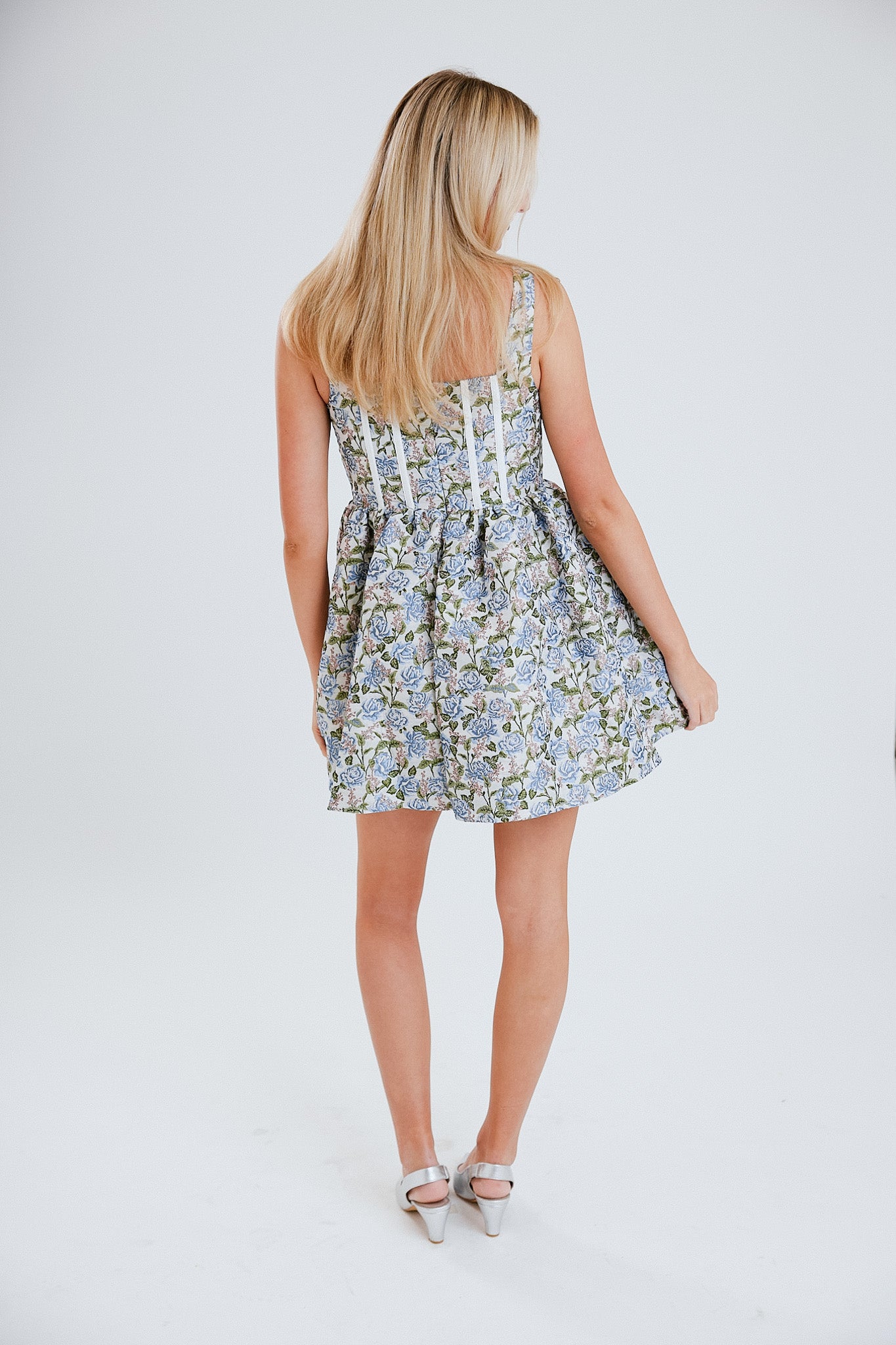 Transform your style in our In The Garden Mini Dress - Blue. With a corset binding detail, this mini dress brings a flirtatious touch to your wardrobe.