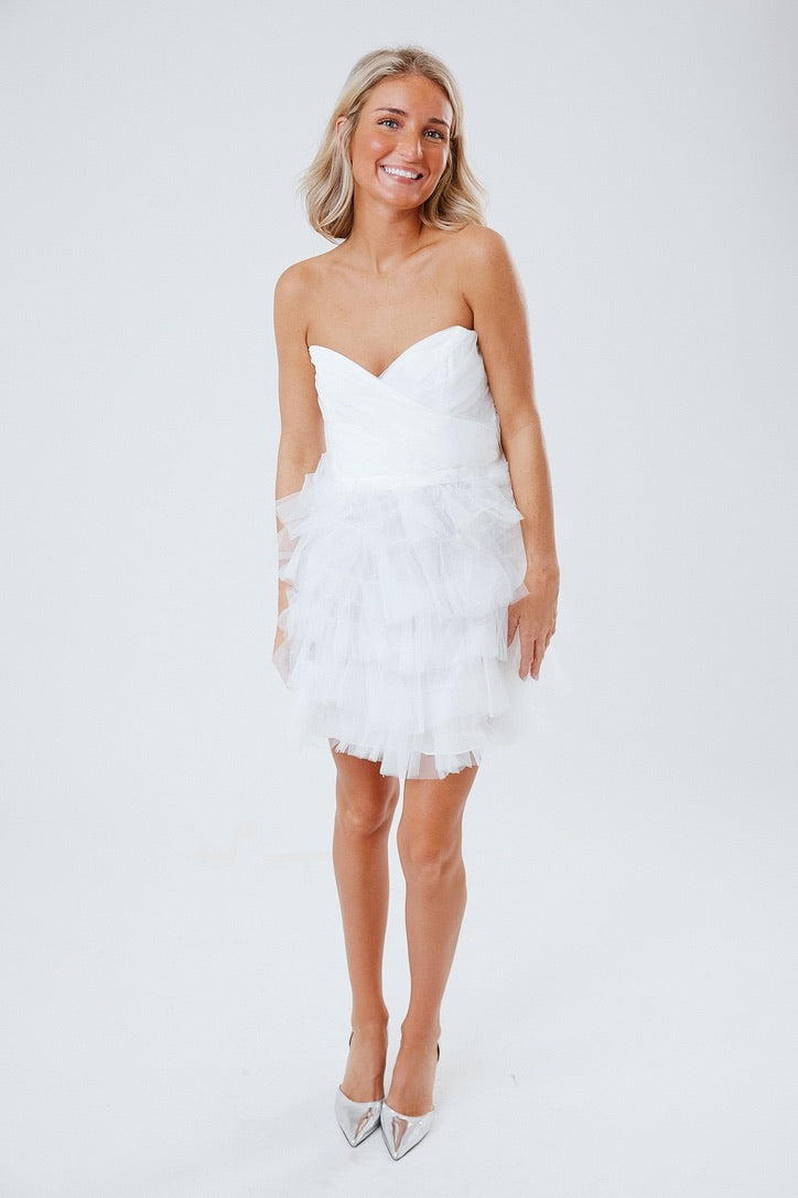 Elegant Ruffles Dress - White