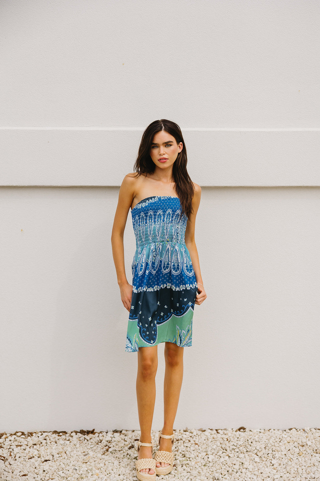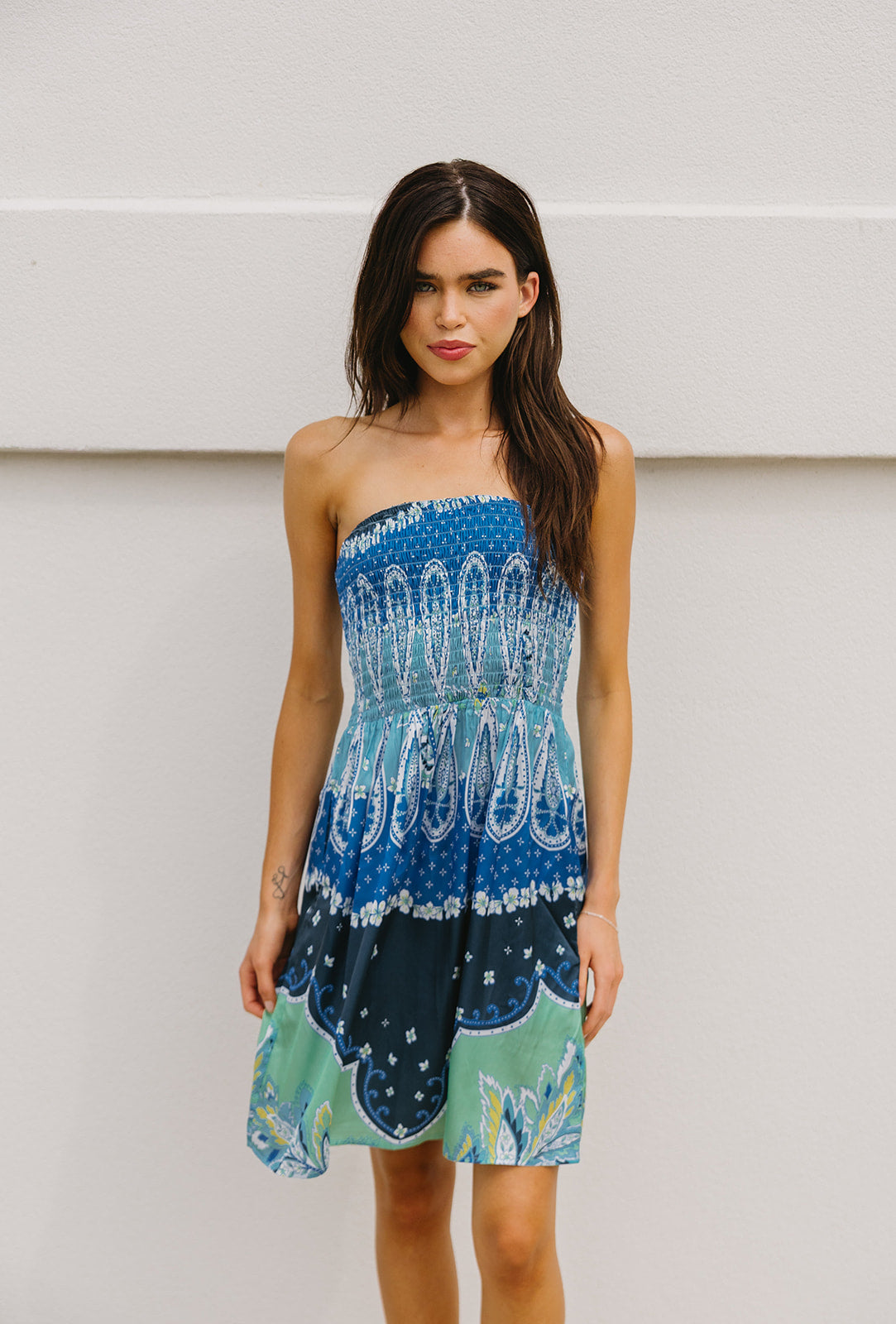 Truly Tropical Mini Dress - Blue Bali Print