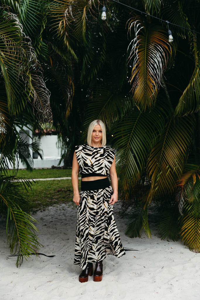 Mesh Fold Down Maxi Skirt - Chocolate Floral