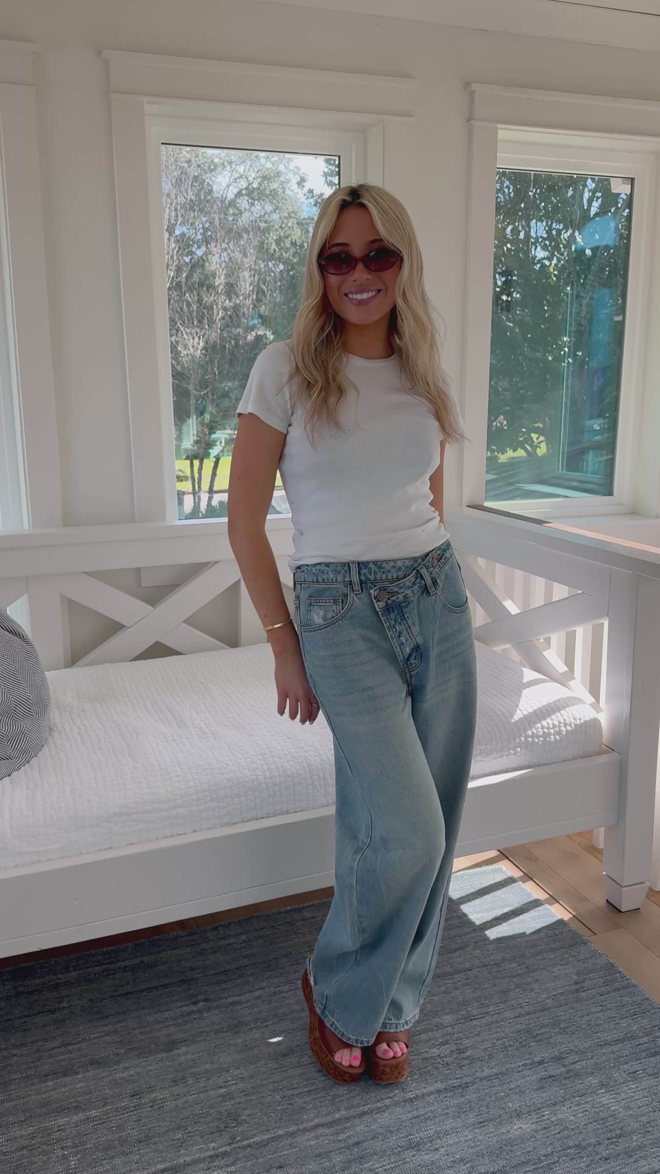 Cross Over Slouch Denim Jeans - Stone Wash Blue
