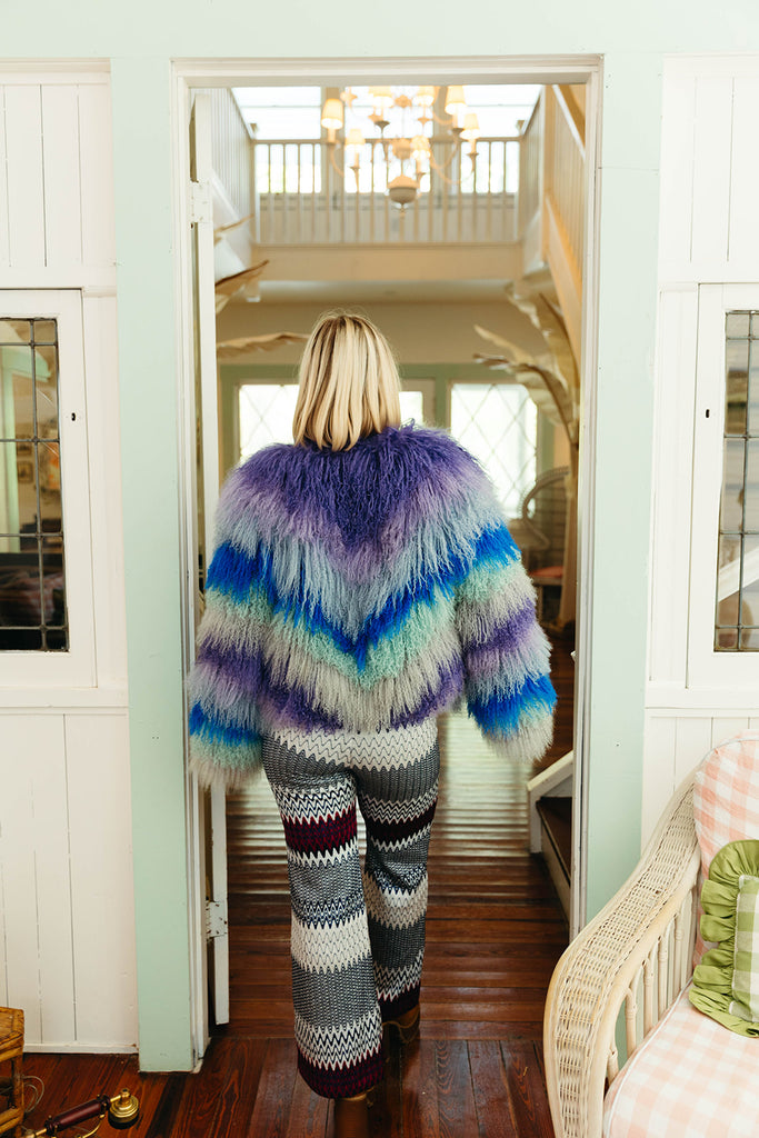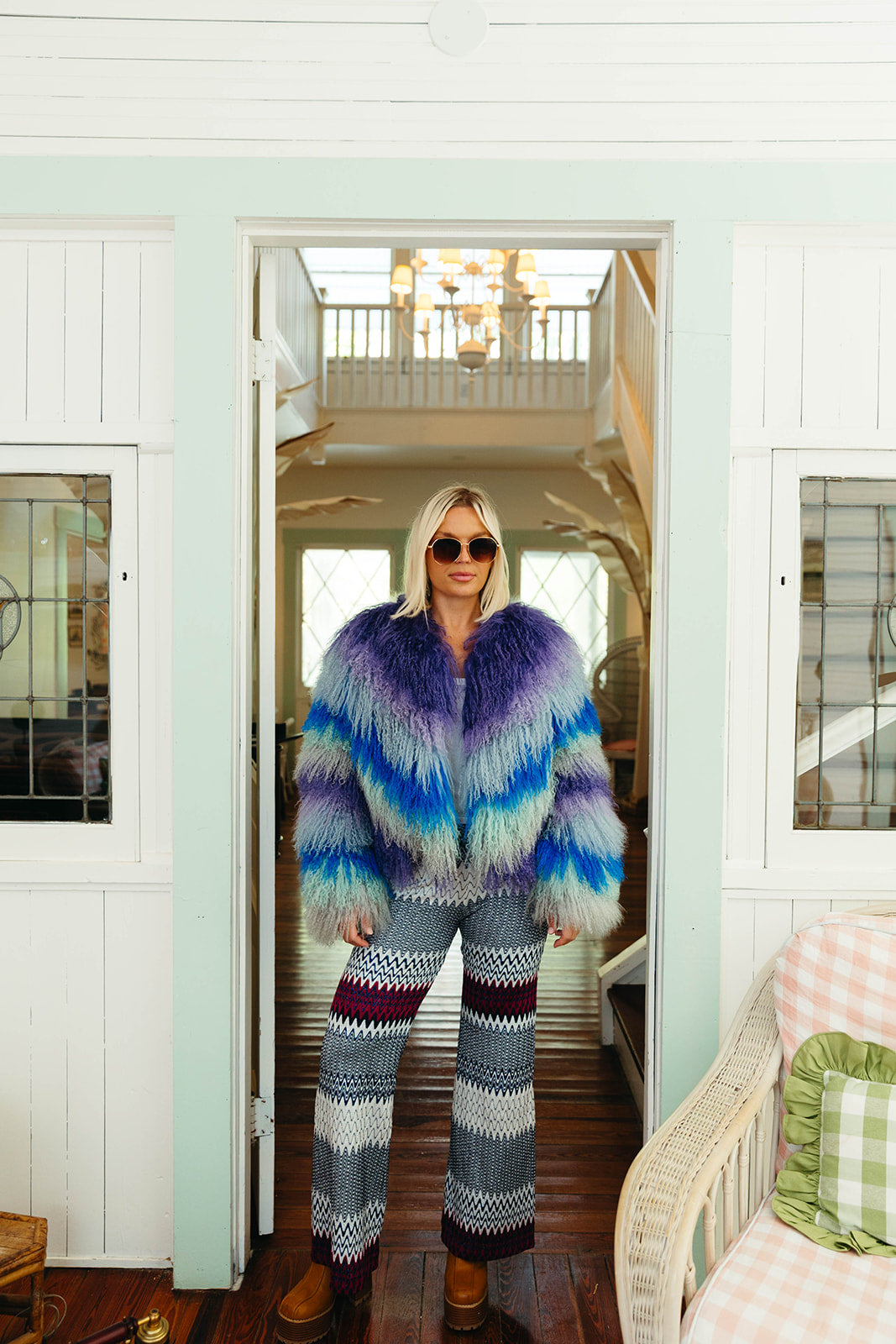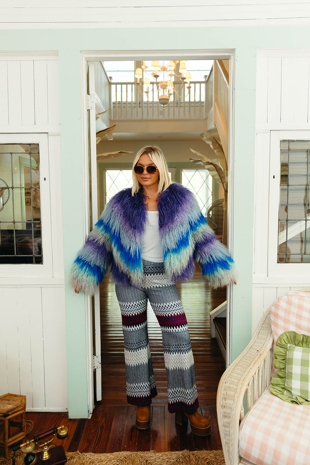 NAVY HERRINGBONE LUREX JACQUARD TROUSER