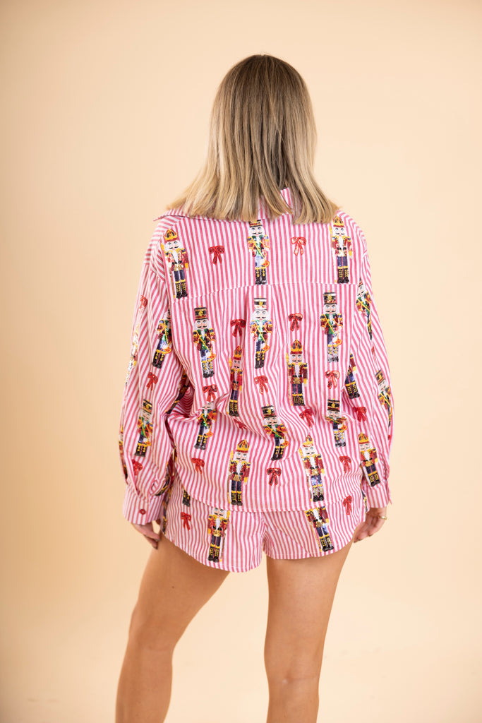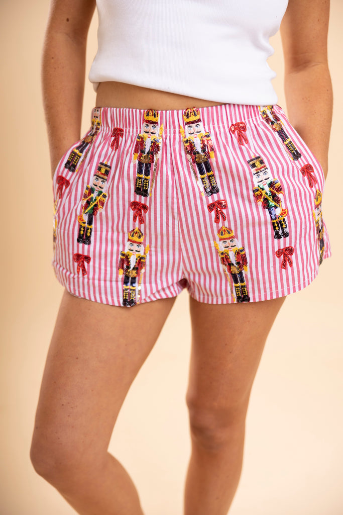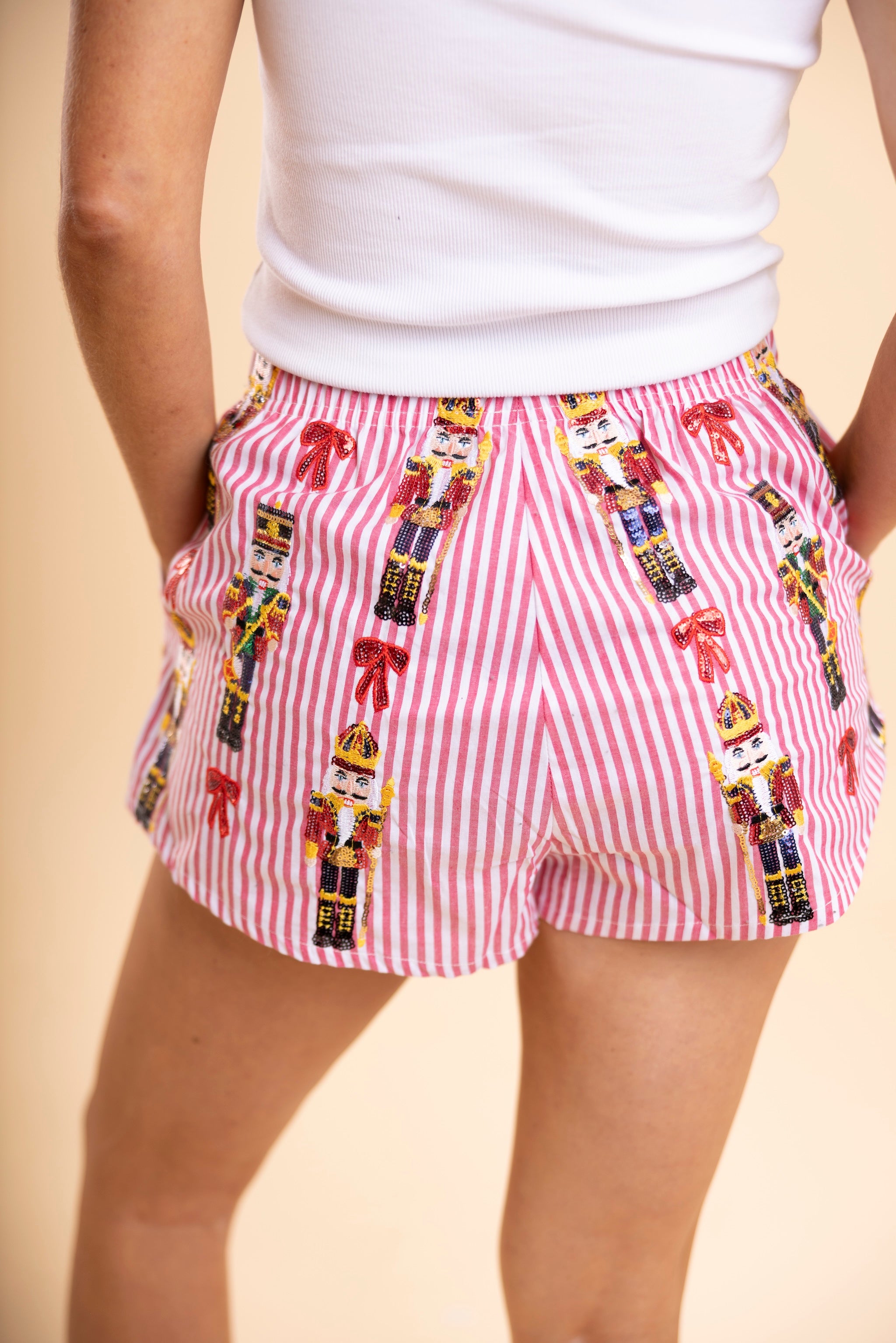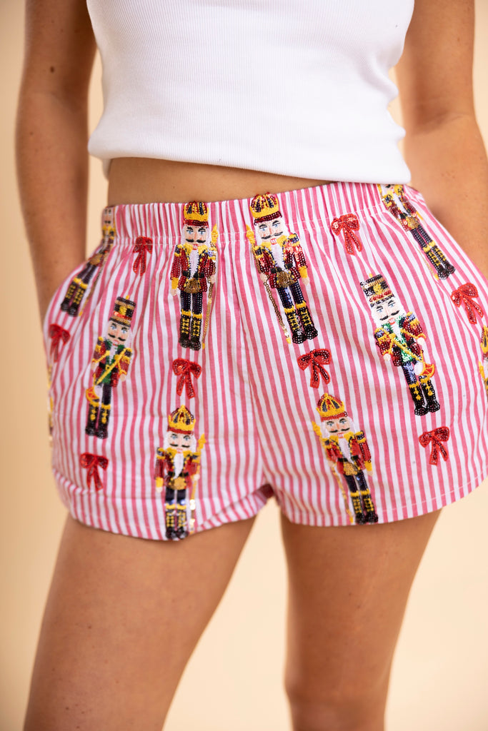 Striped Nutcracker and Bow Cotton Shorts - Red/White