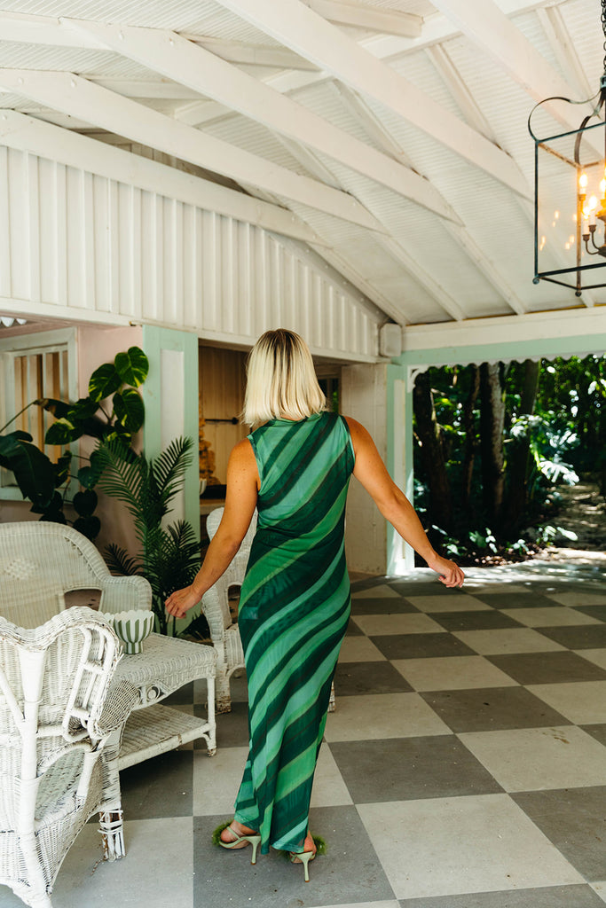 Forest Sleeveless Midi Mesh Dress - Forest Print