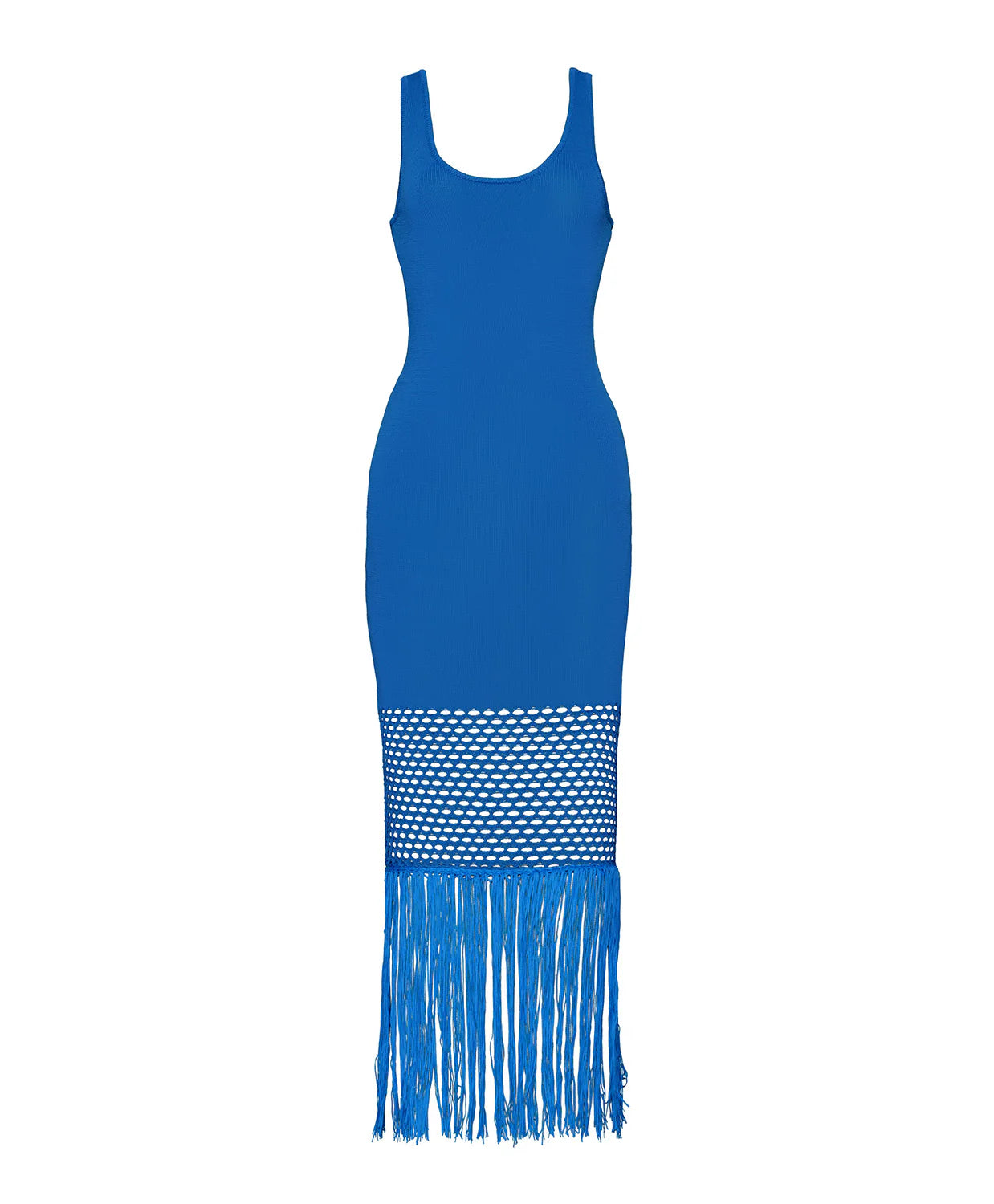 A classic knit silhouette is transformed by flirty fringe and crochet details. This casual look will take you from weekend errands to golden sands and delivers a non-binding ease of wear.