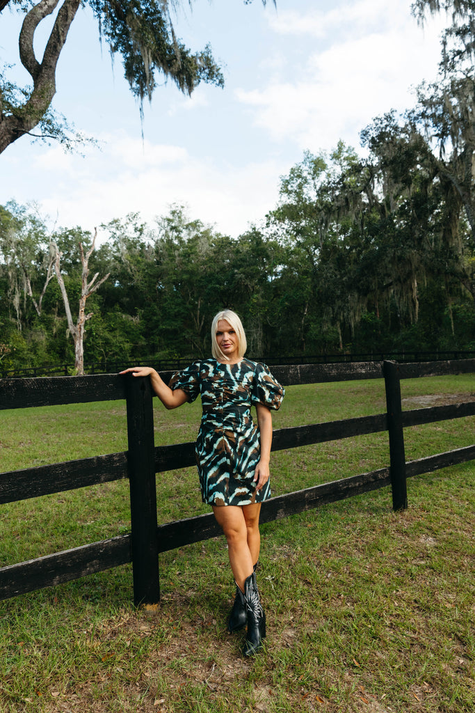 Tanner Puff Sleeve Mini Dress - Aerial Terrain