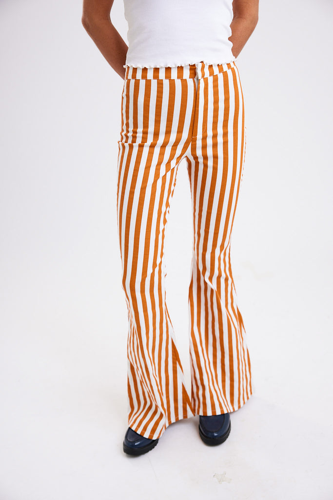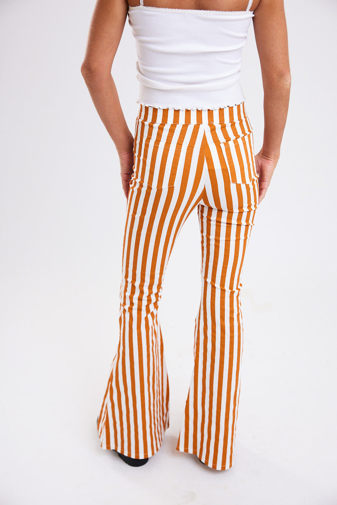 Emmi's Striped Boot Cut Pants - White/Tiger