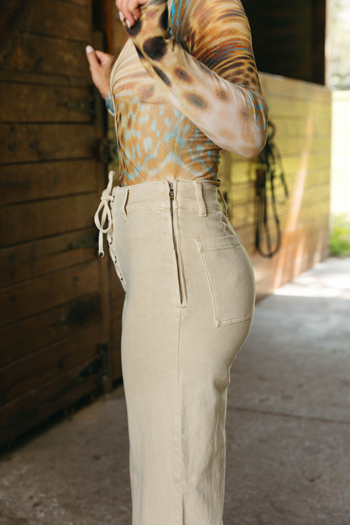 Mel Wide Leg Jeans - Washed Beige