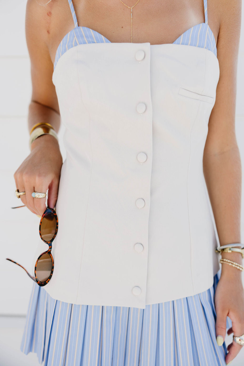 - Zipper closure in back