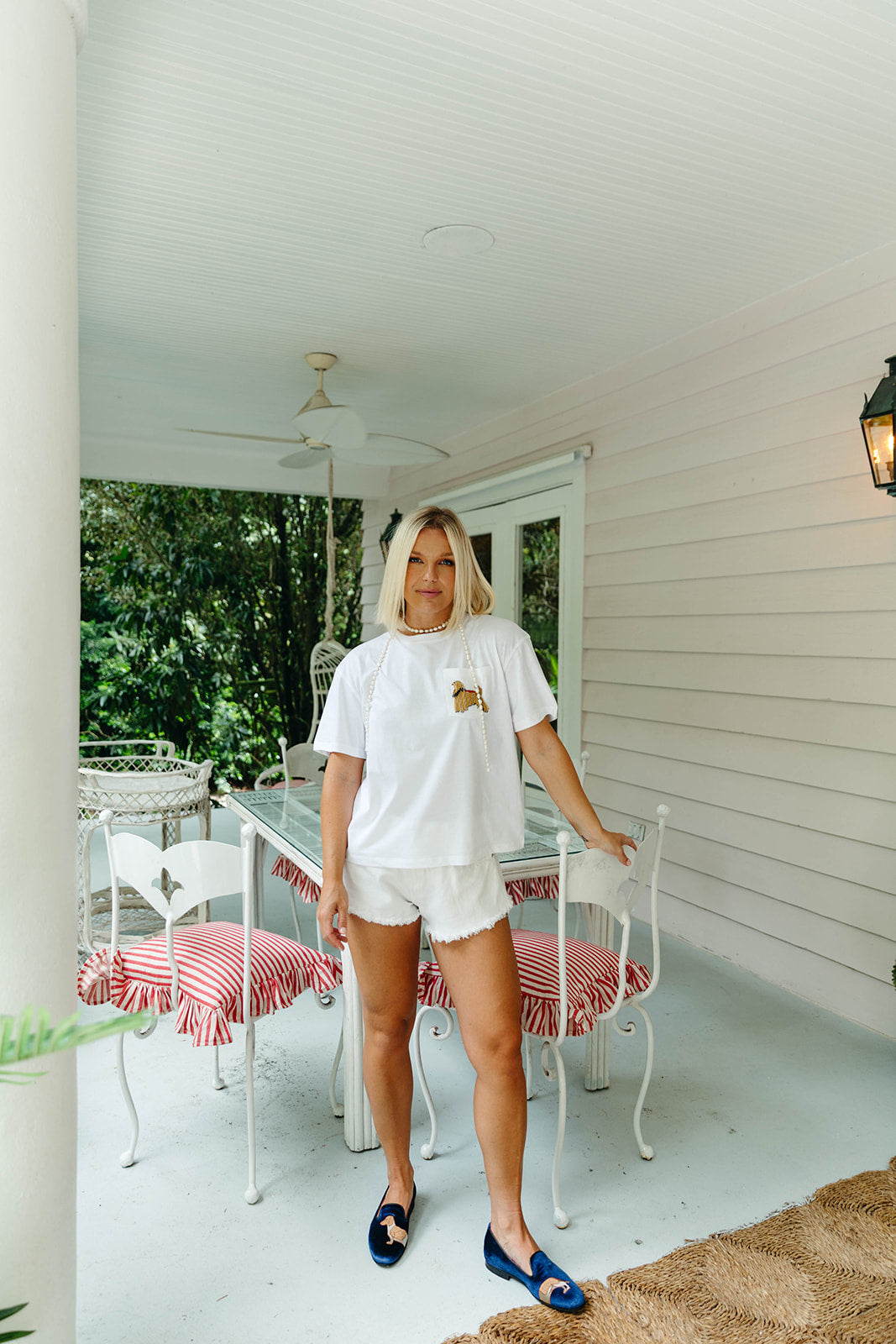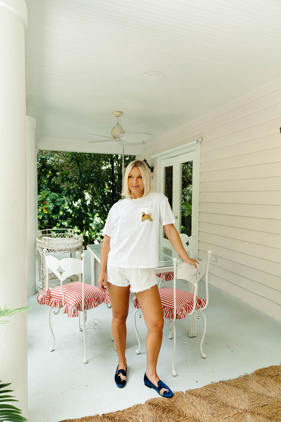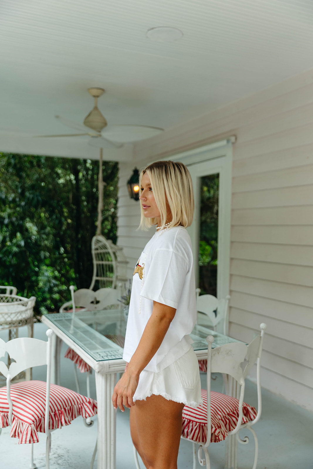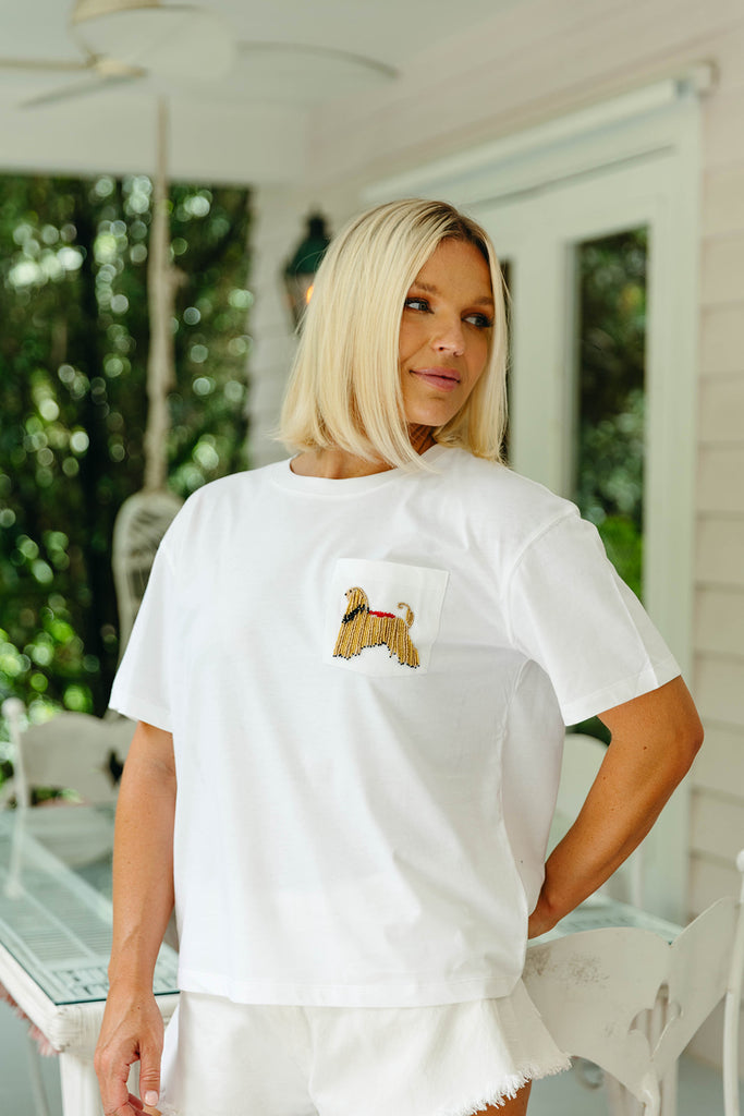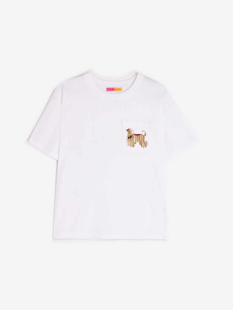 WHITE T-SHIRT WITH DOG EMBROIDERY