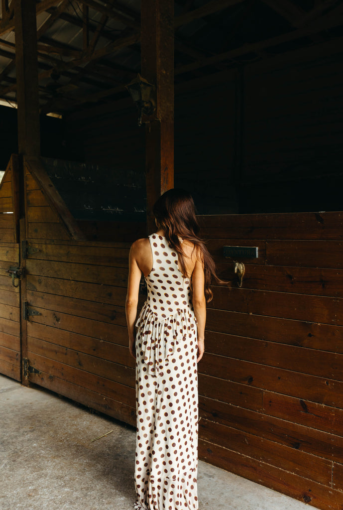 Bovina Ruffle Maxi Dress - Gold Halo Dot