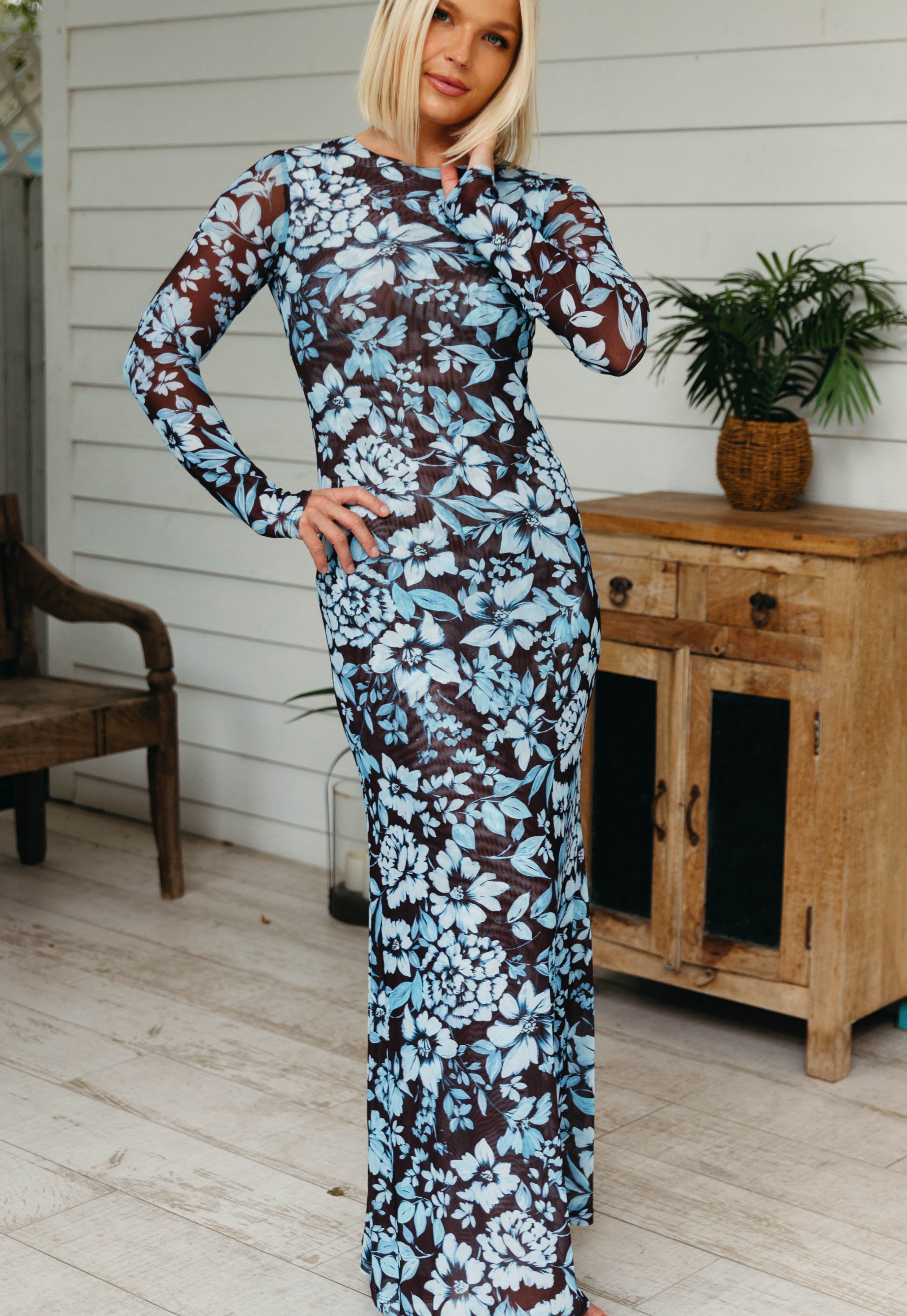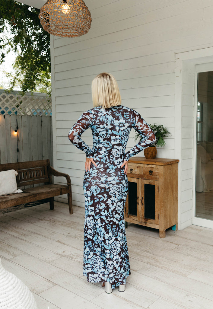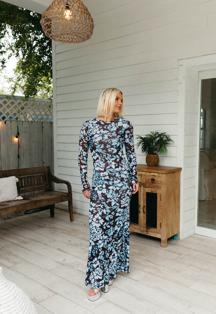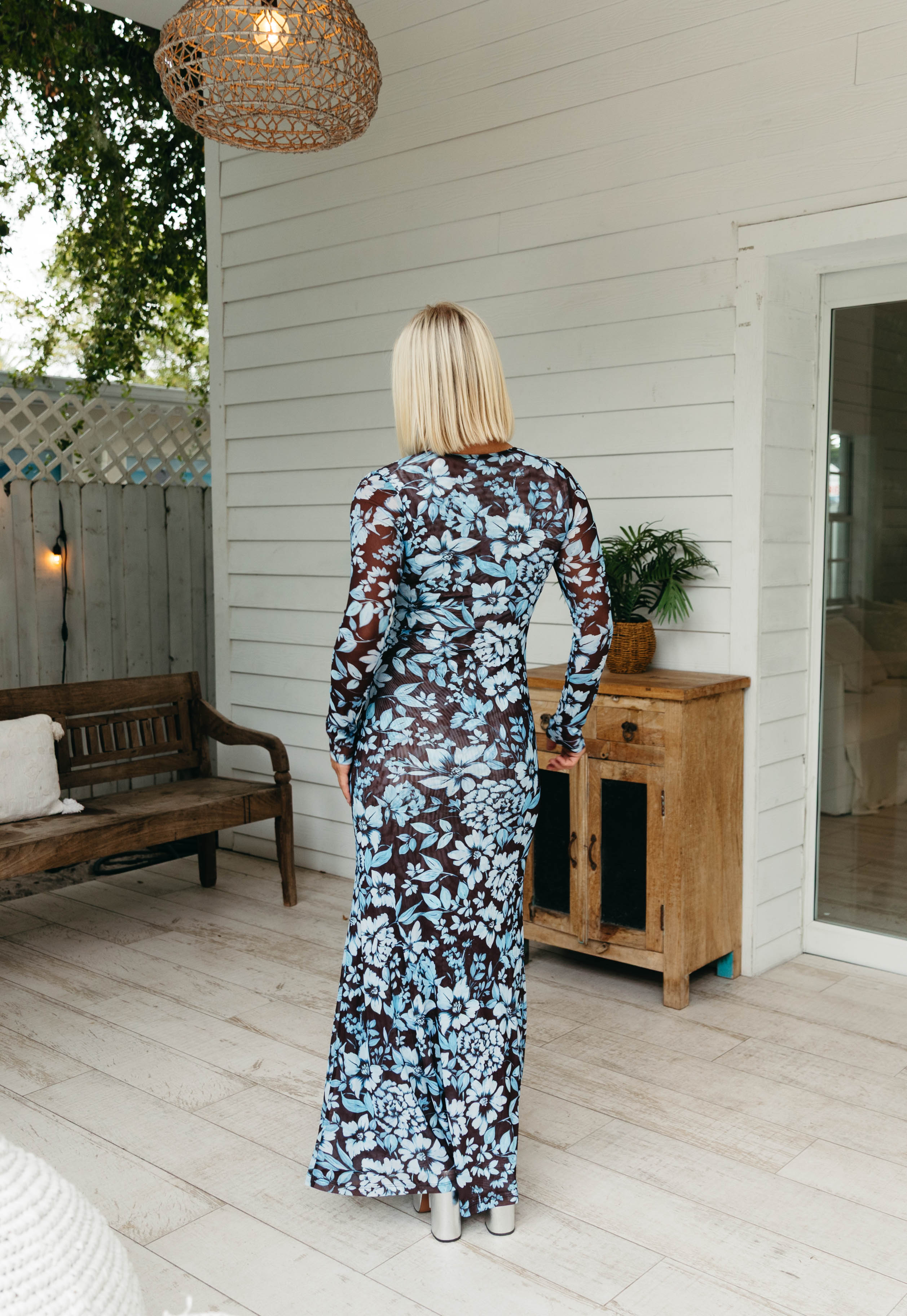 Mesh Promise Me Long Sleeve Maxi Dress - Chocolate Floral