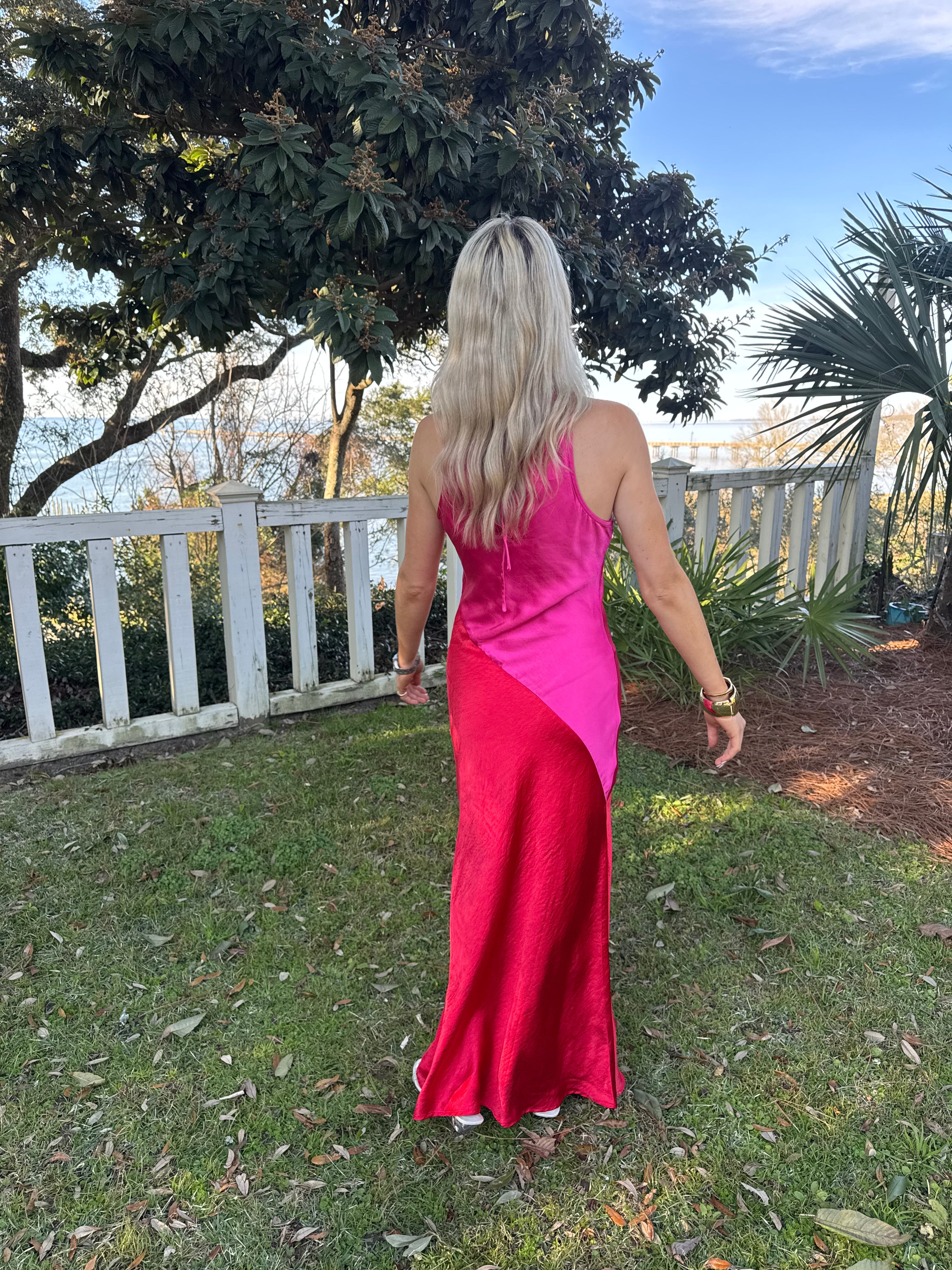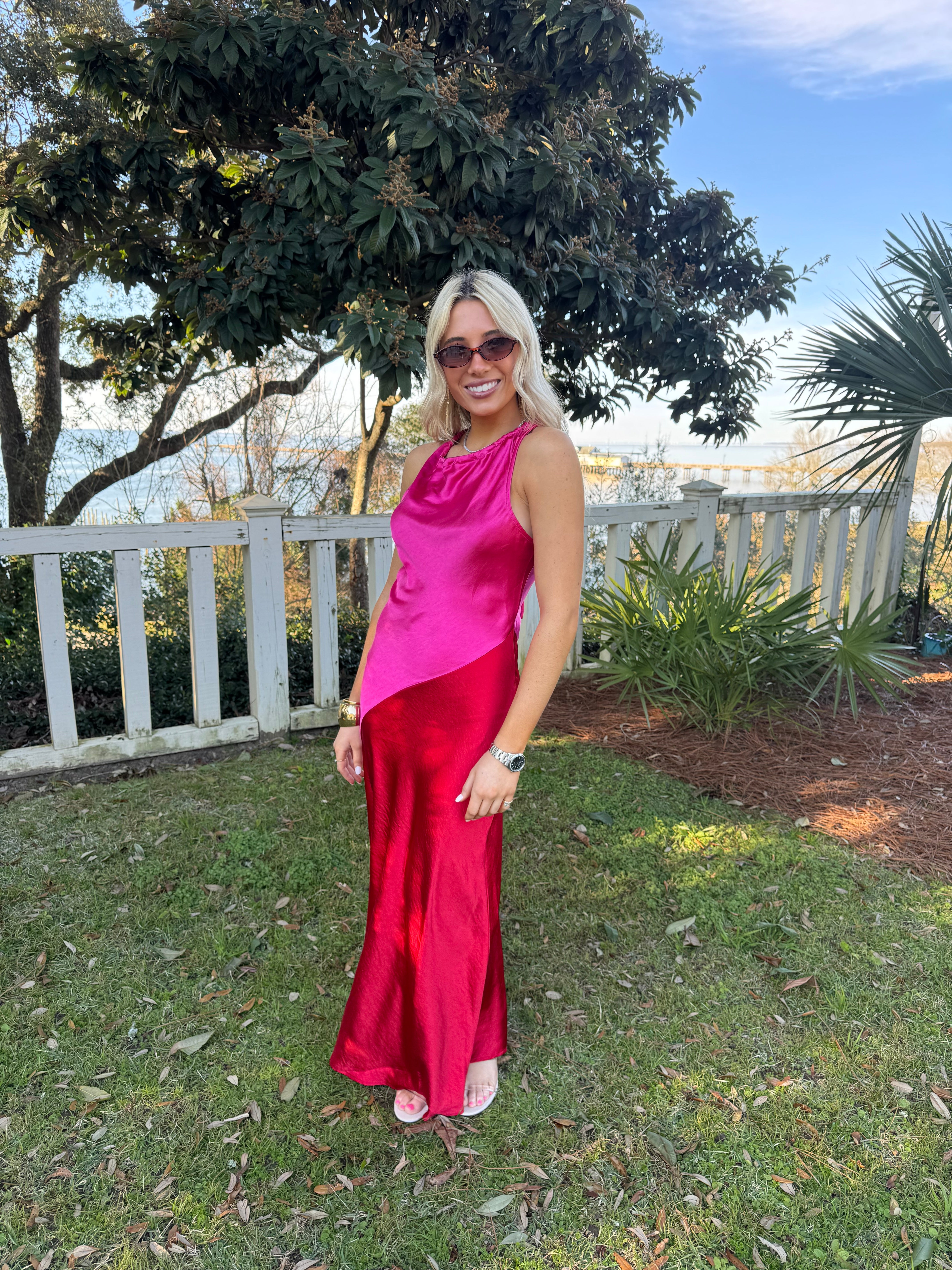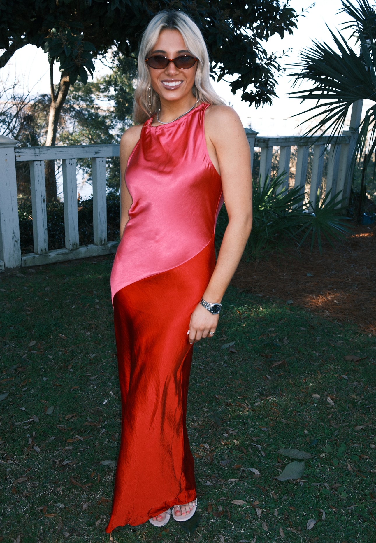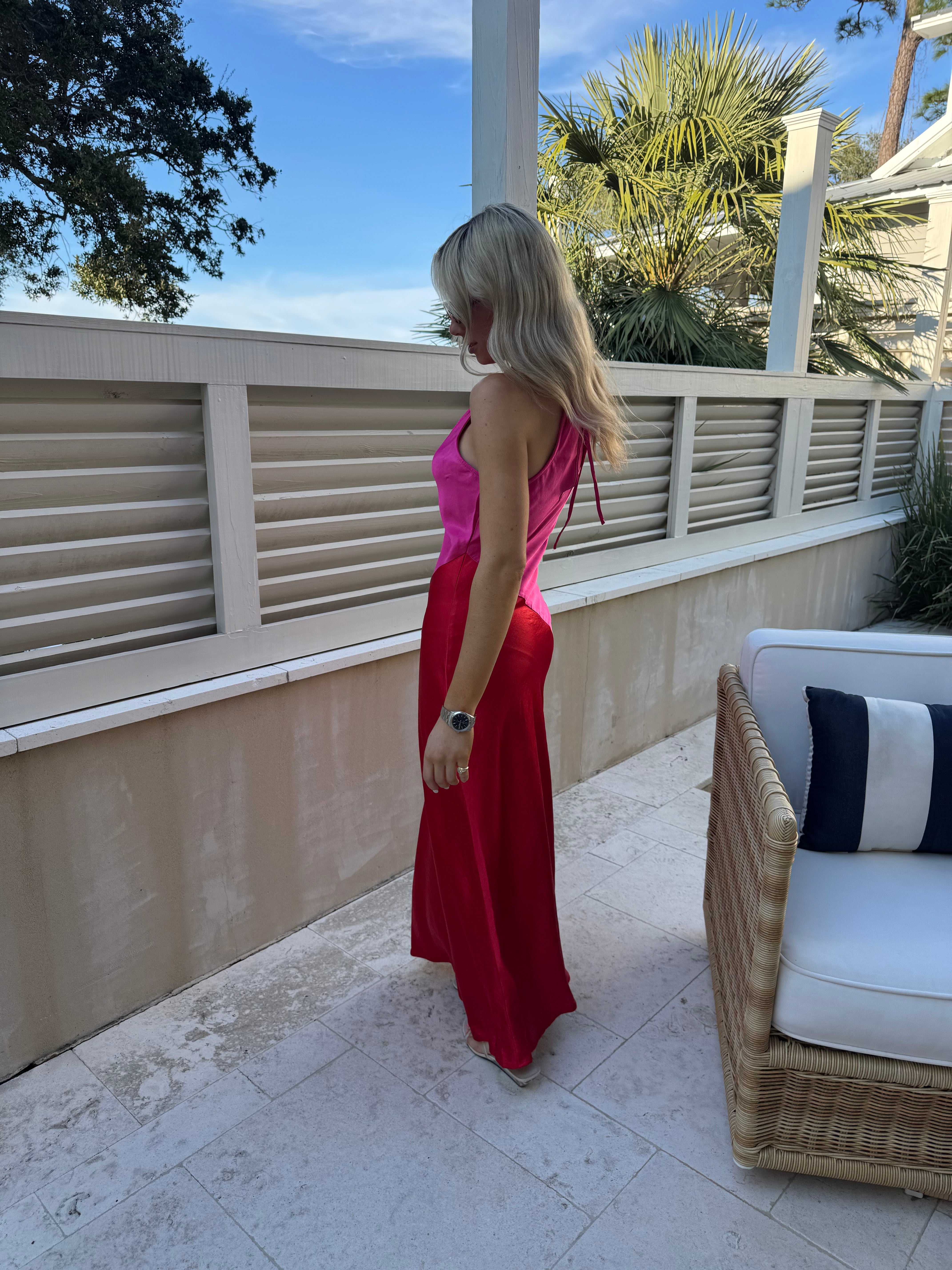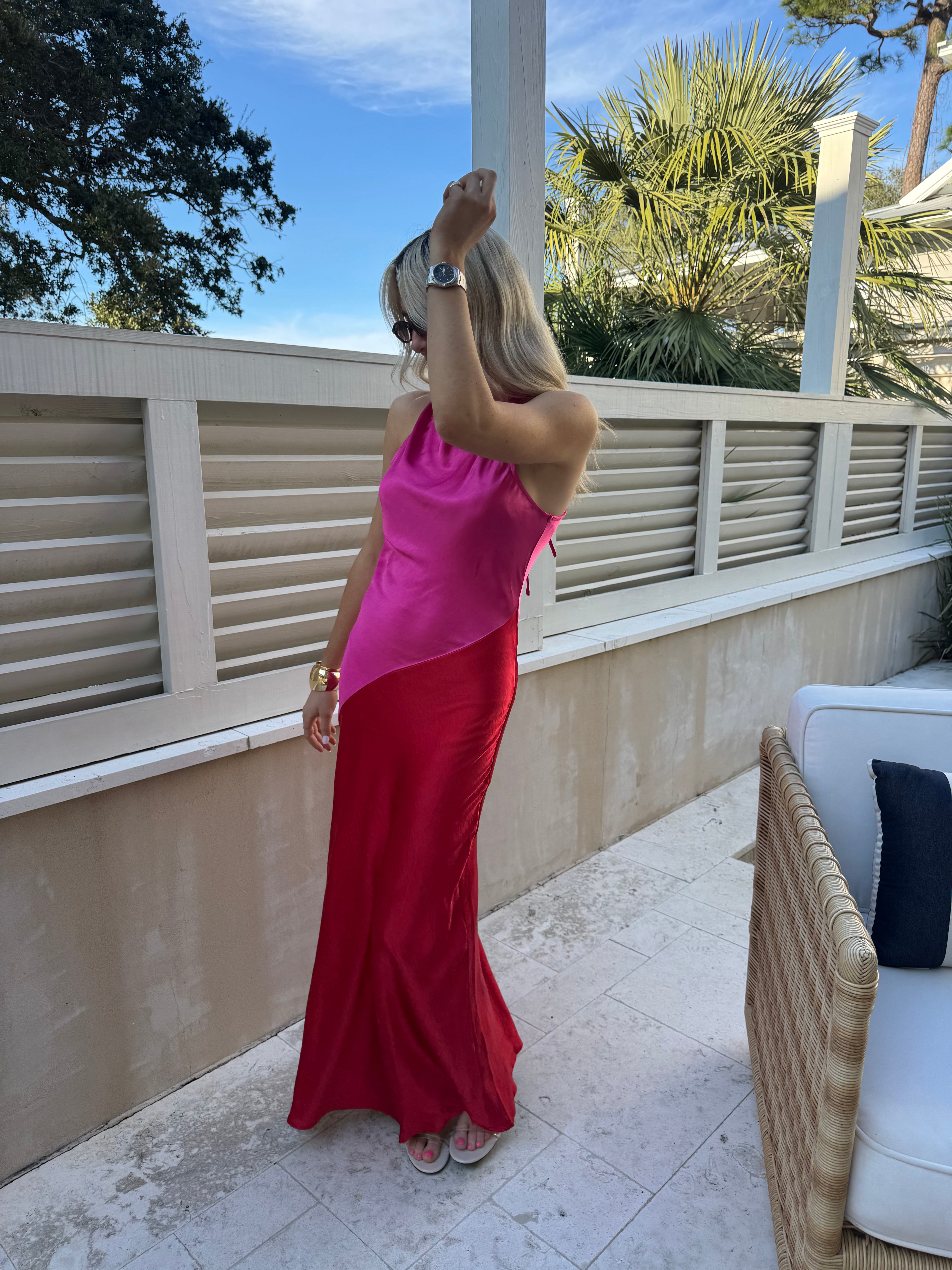 Stay on top of your style game with our On The Lookout Maxi Dress! This color block sheath maxi dress features an adjustable drawstring neckline for a fun and customizable look.