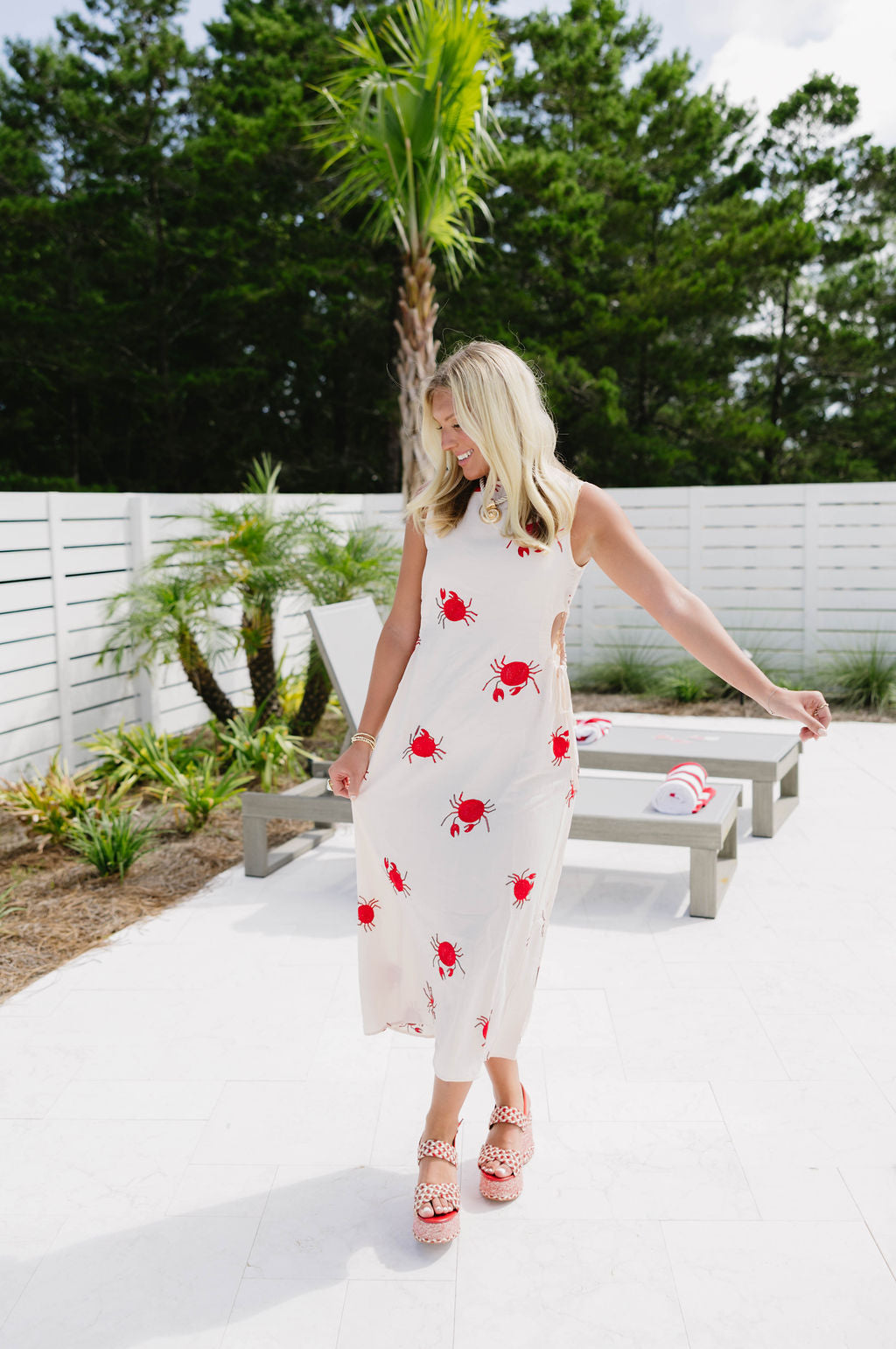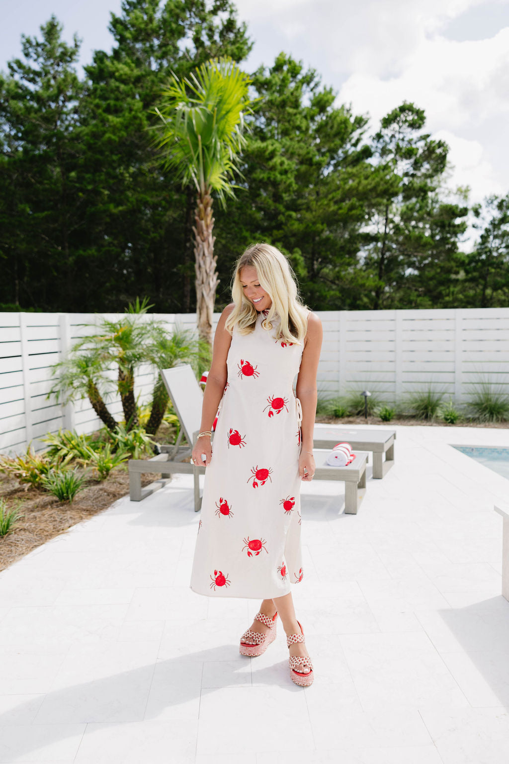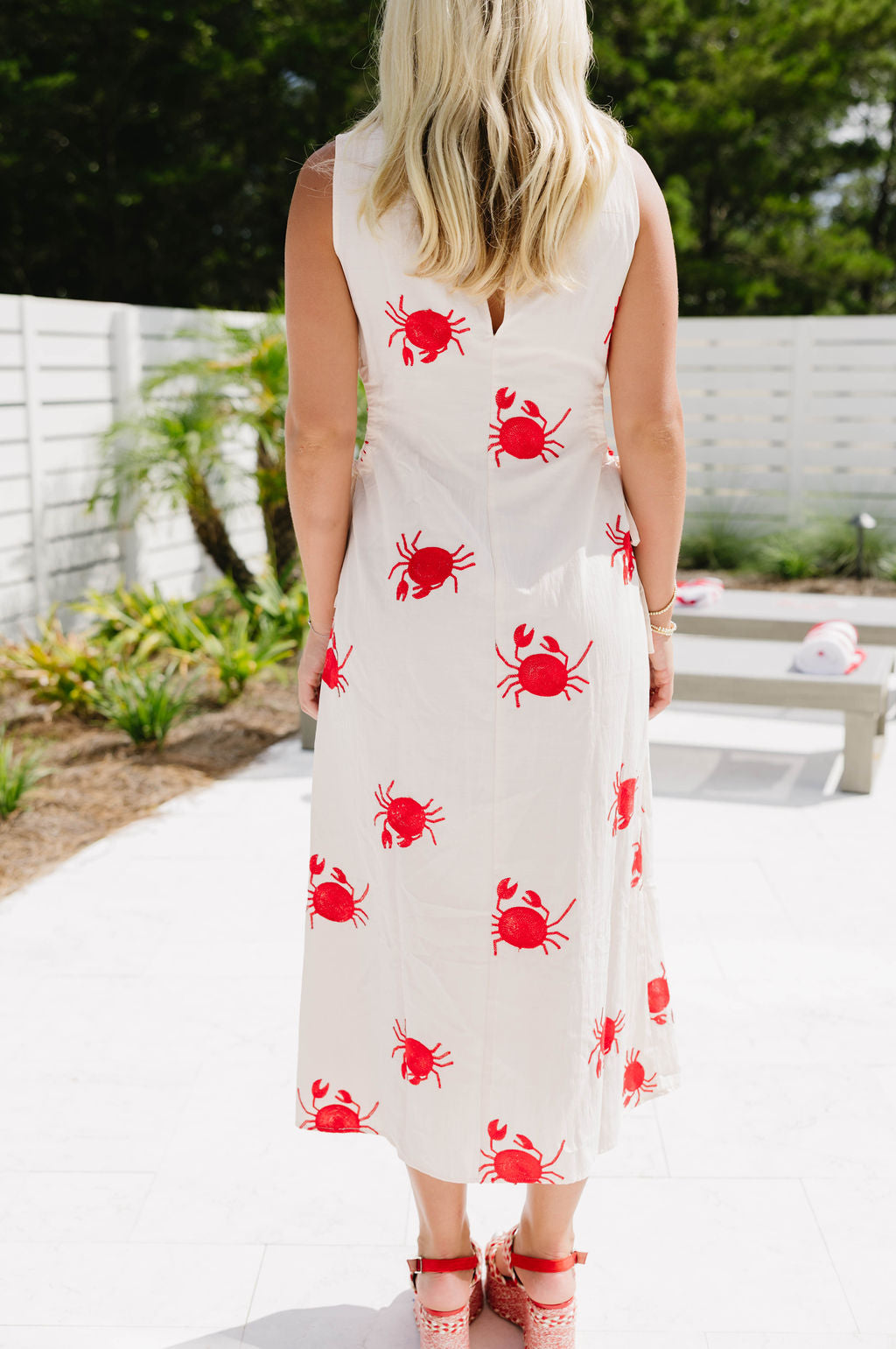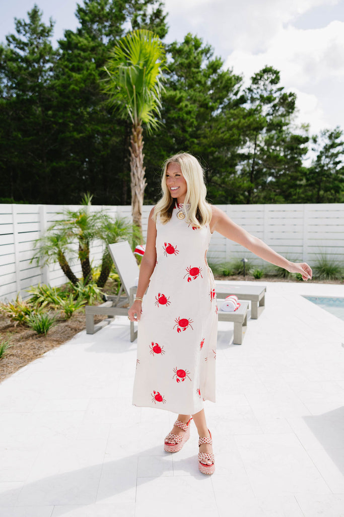 - Embroidered crab details