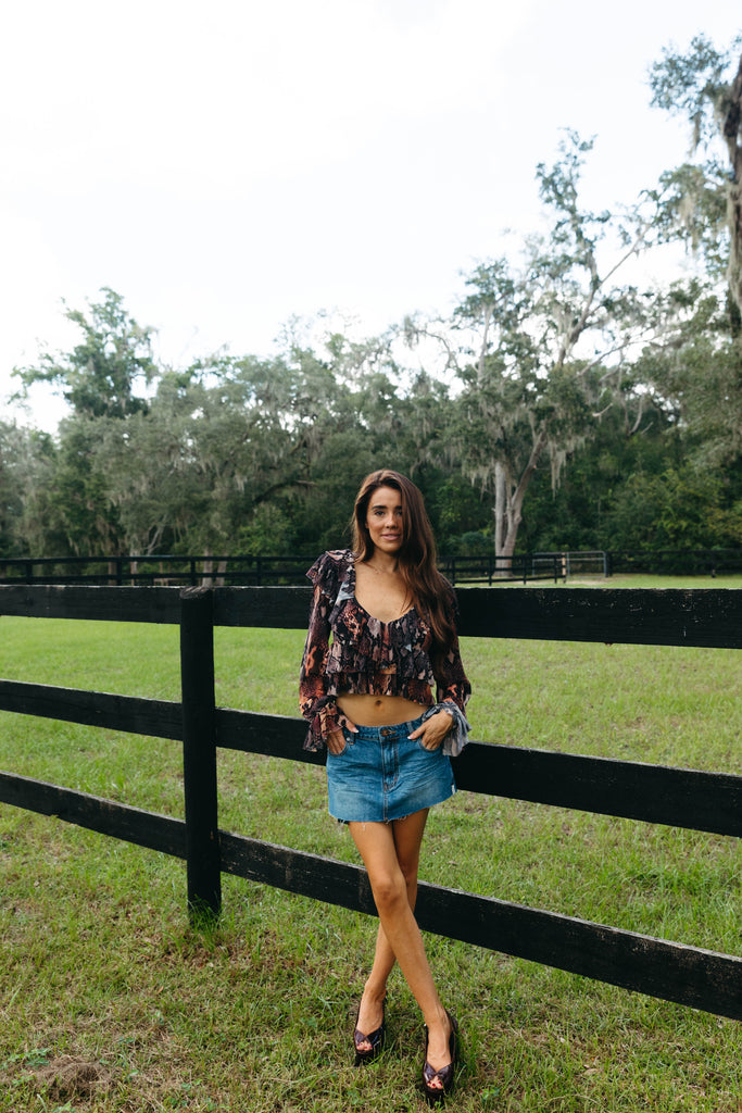 Addison Ruffle Top - Scattered Snake