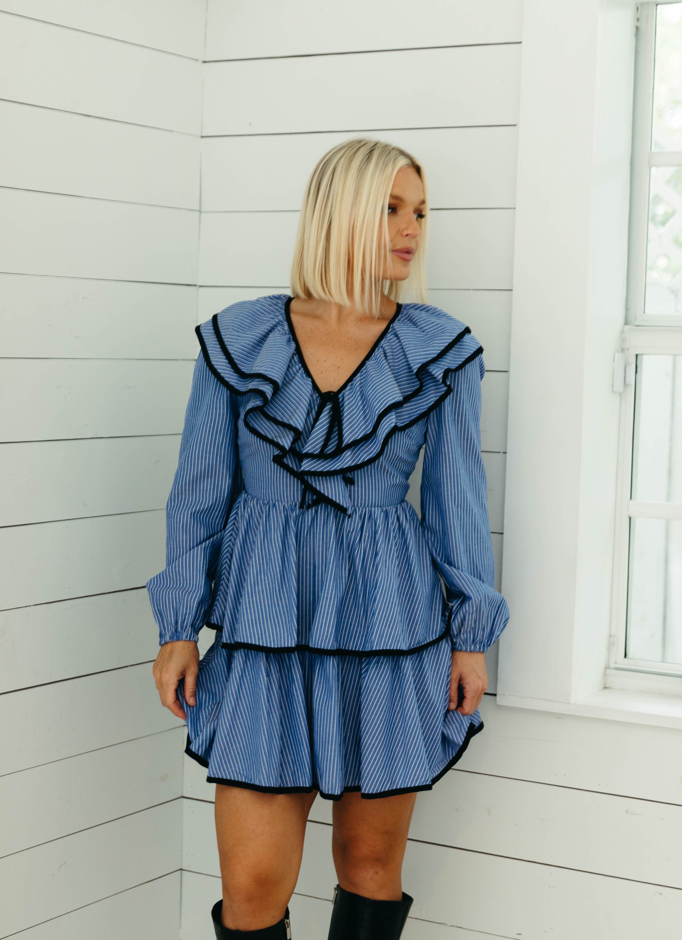 Robbie Mini Dress - Blue/Ivory