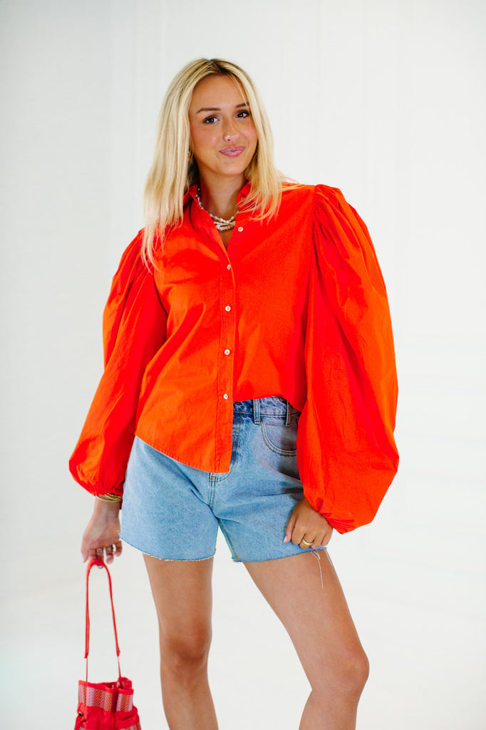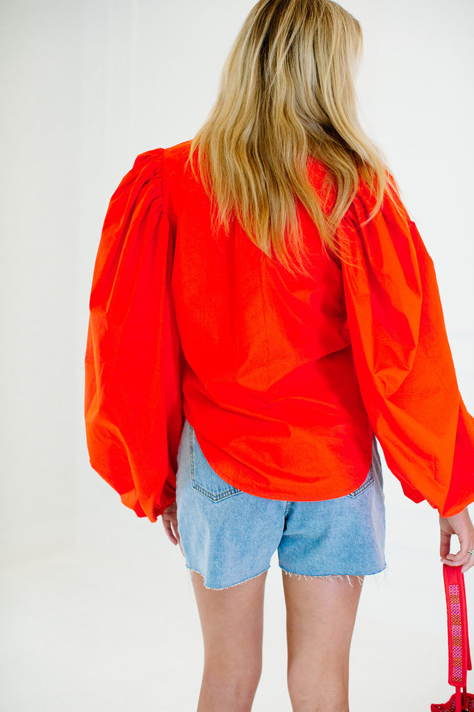 Samba Cotton Poplin Top - Tangerine