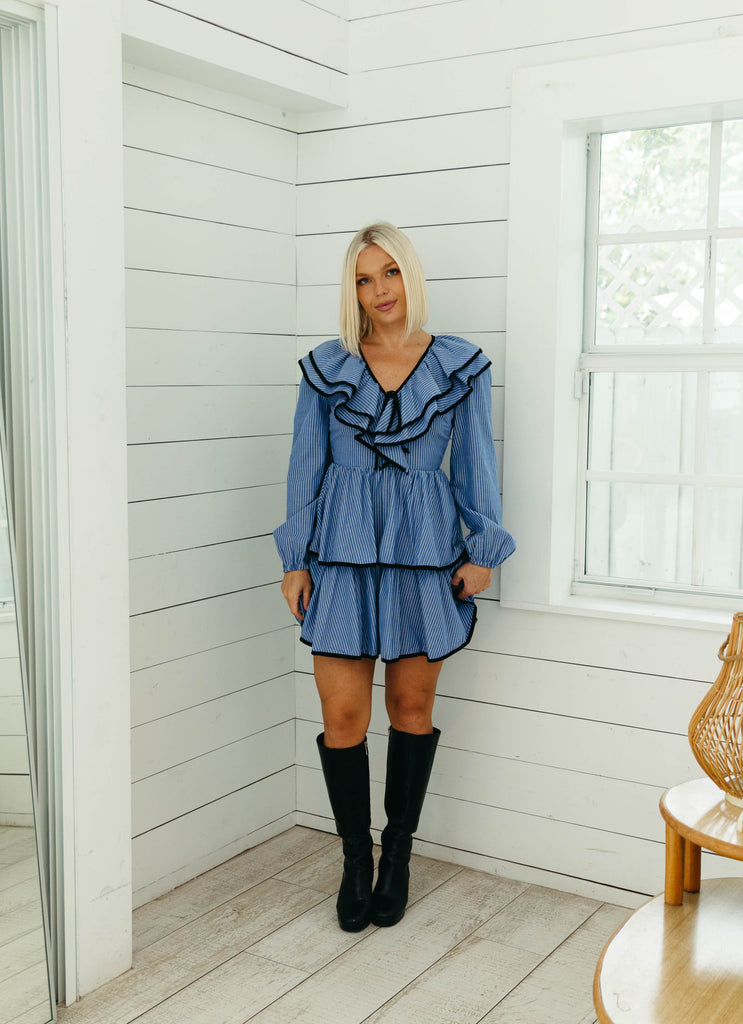 Robbie Mini Dress - Blue/Ivory