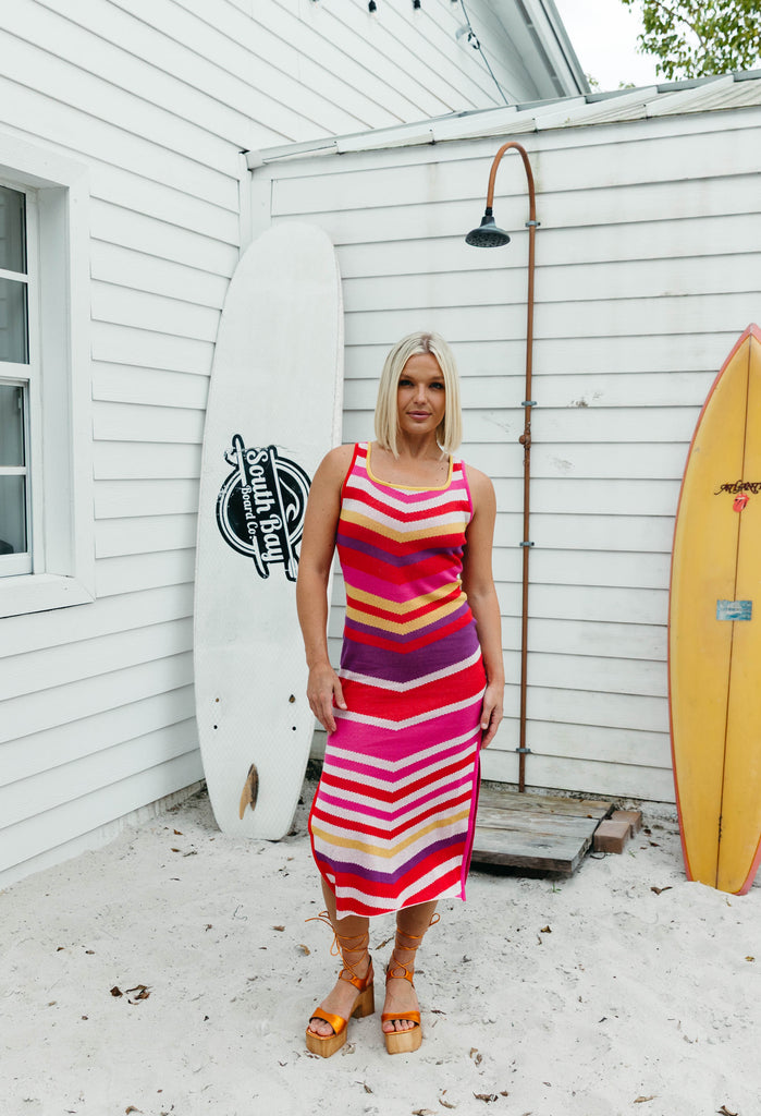 Palm Detail Knit Maxi Dress - Coffee/Cream