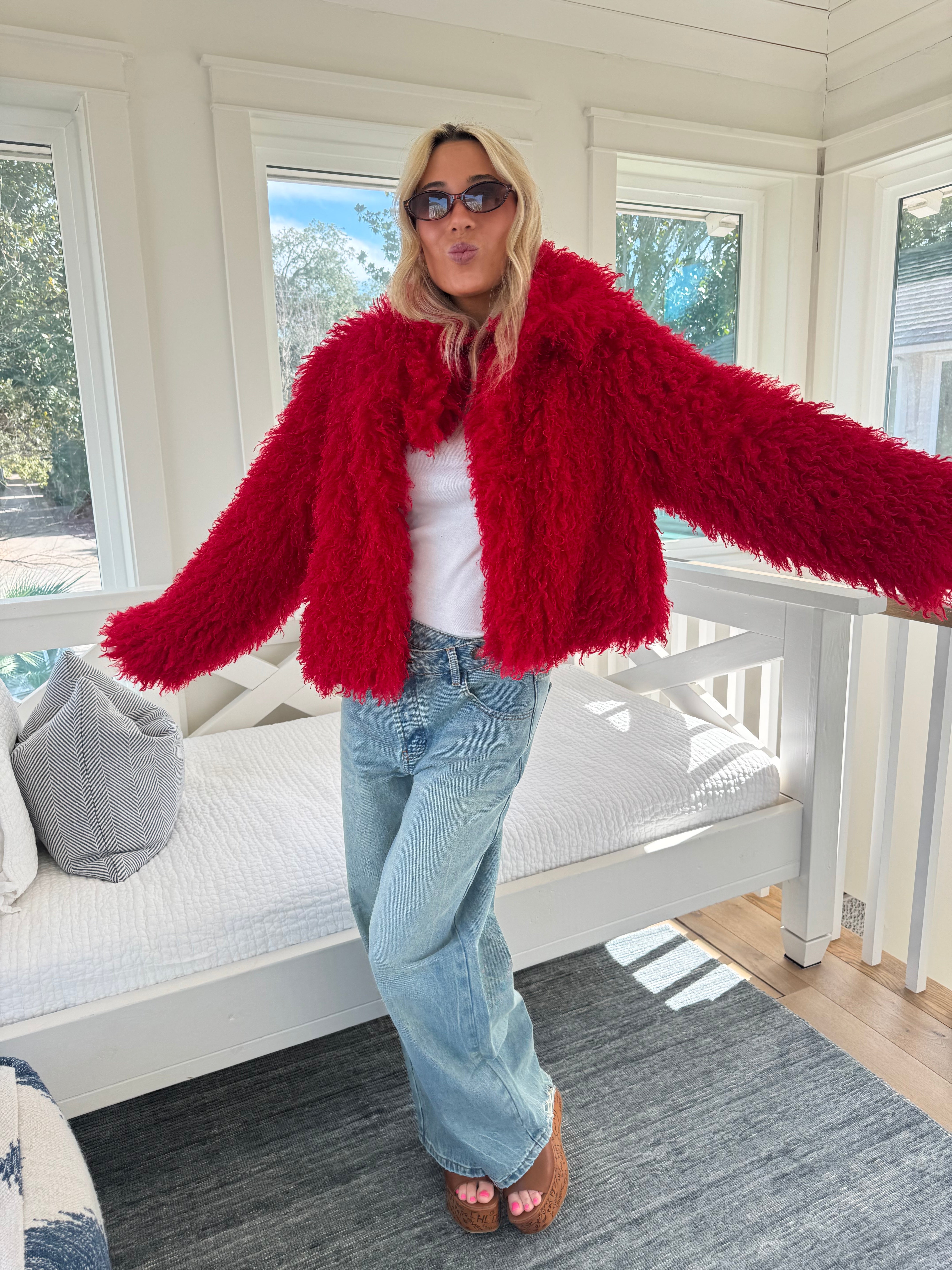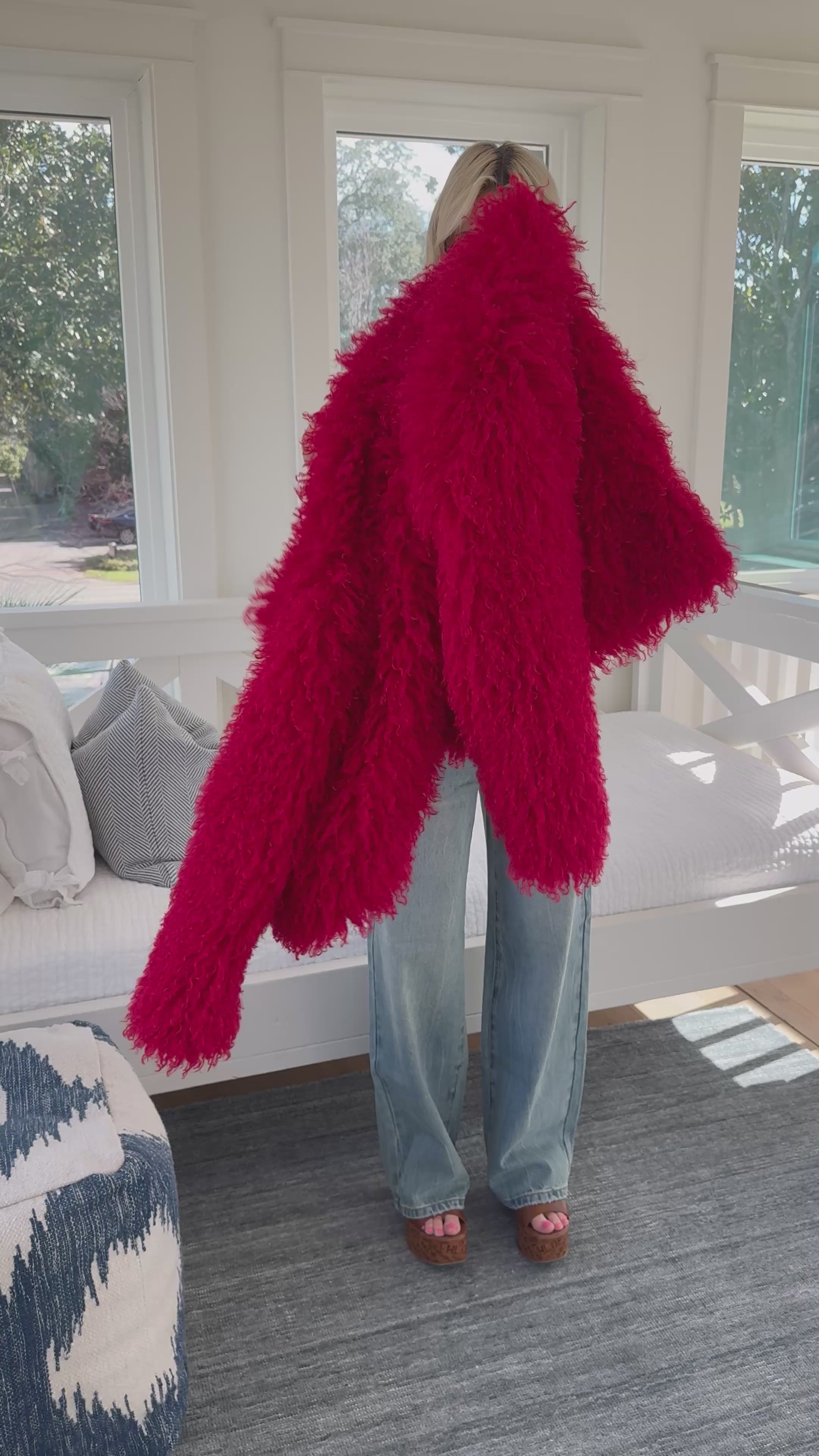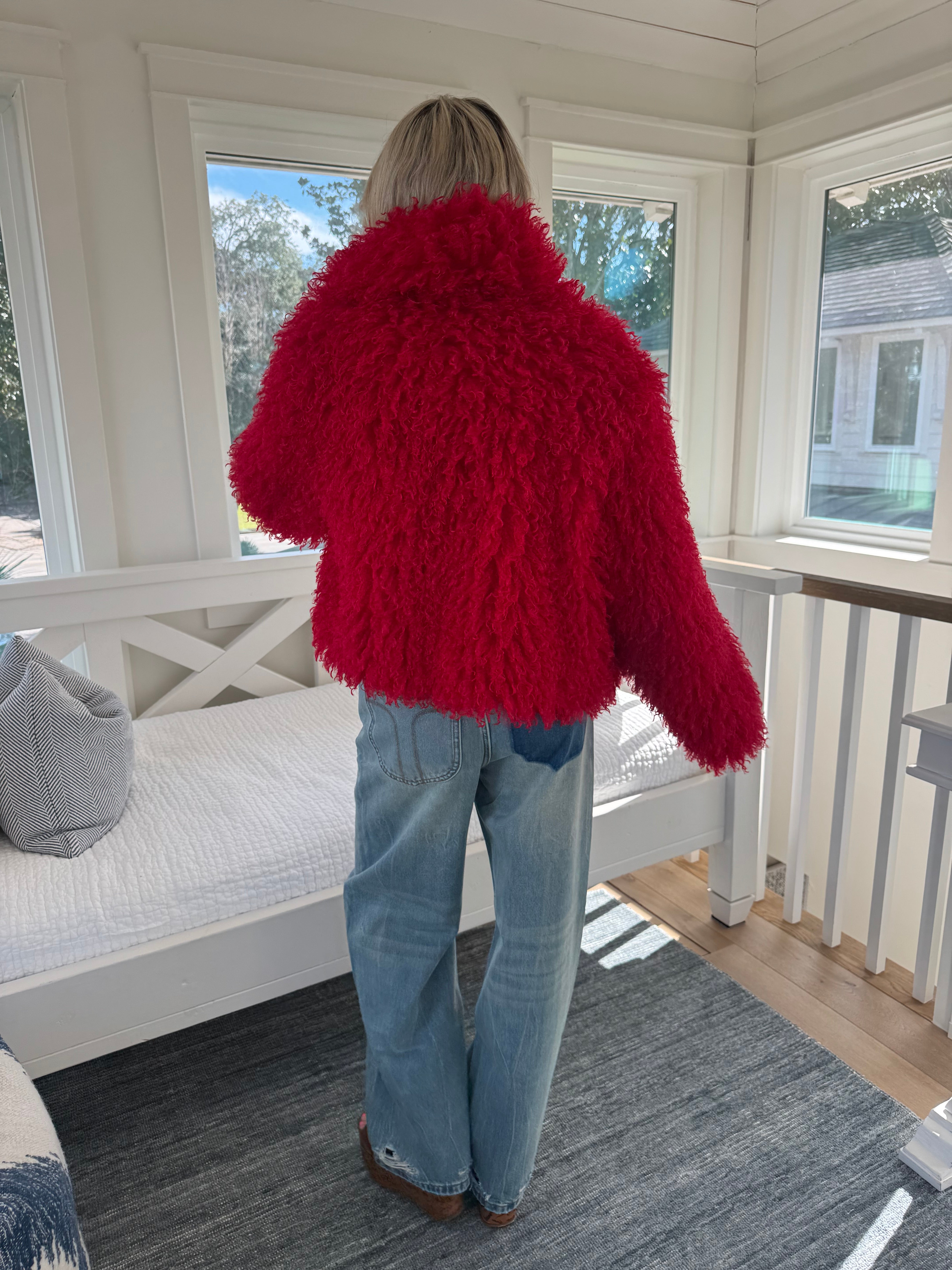 Faux Mongolian Fur Coat - Red