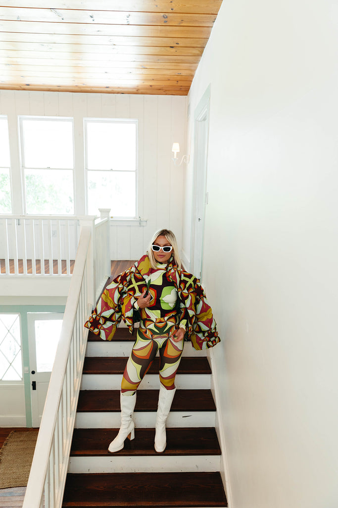 Aw Puffer Jacket - Brown Abstract