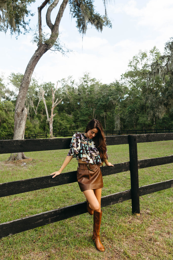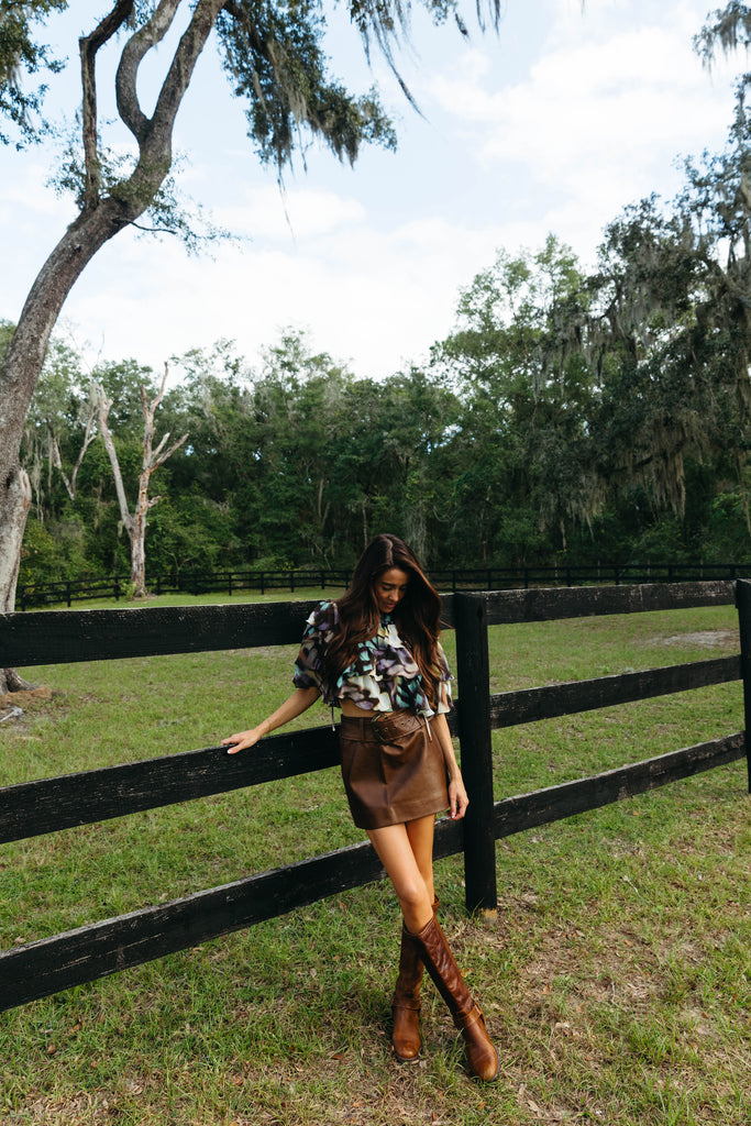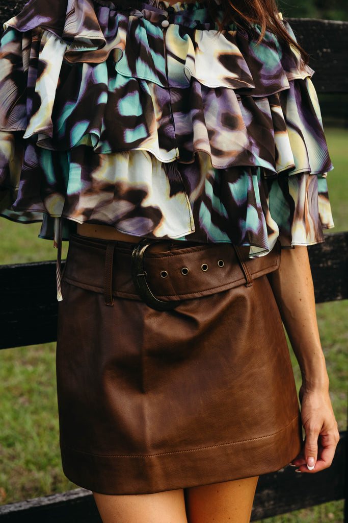 Maverick Mini Skirt - Chestnut Brown Faux Leather