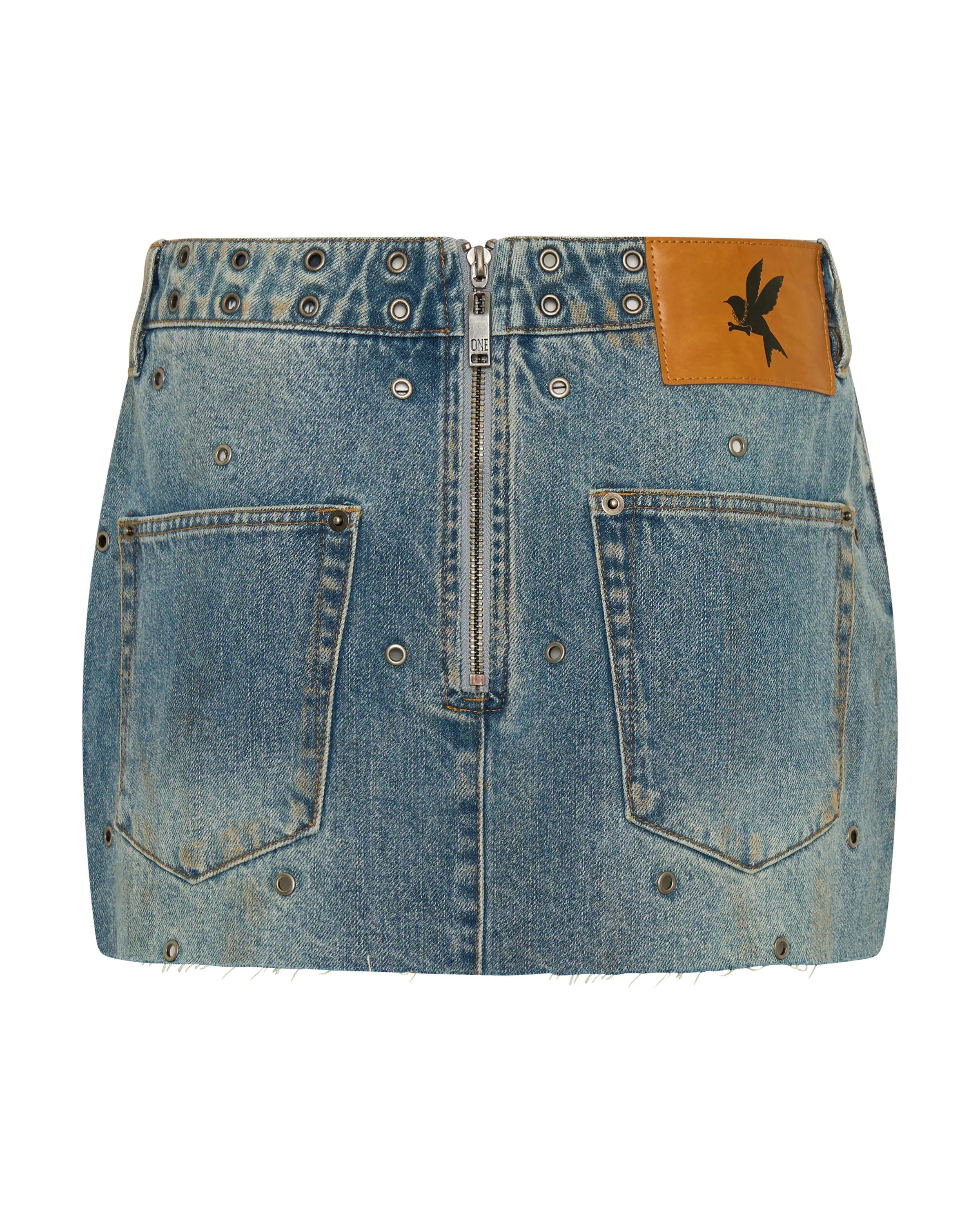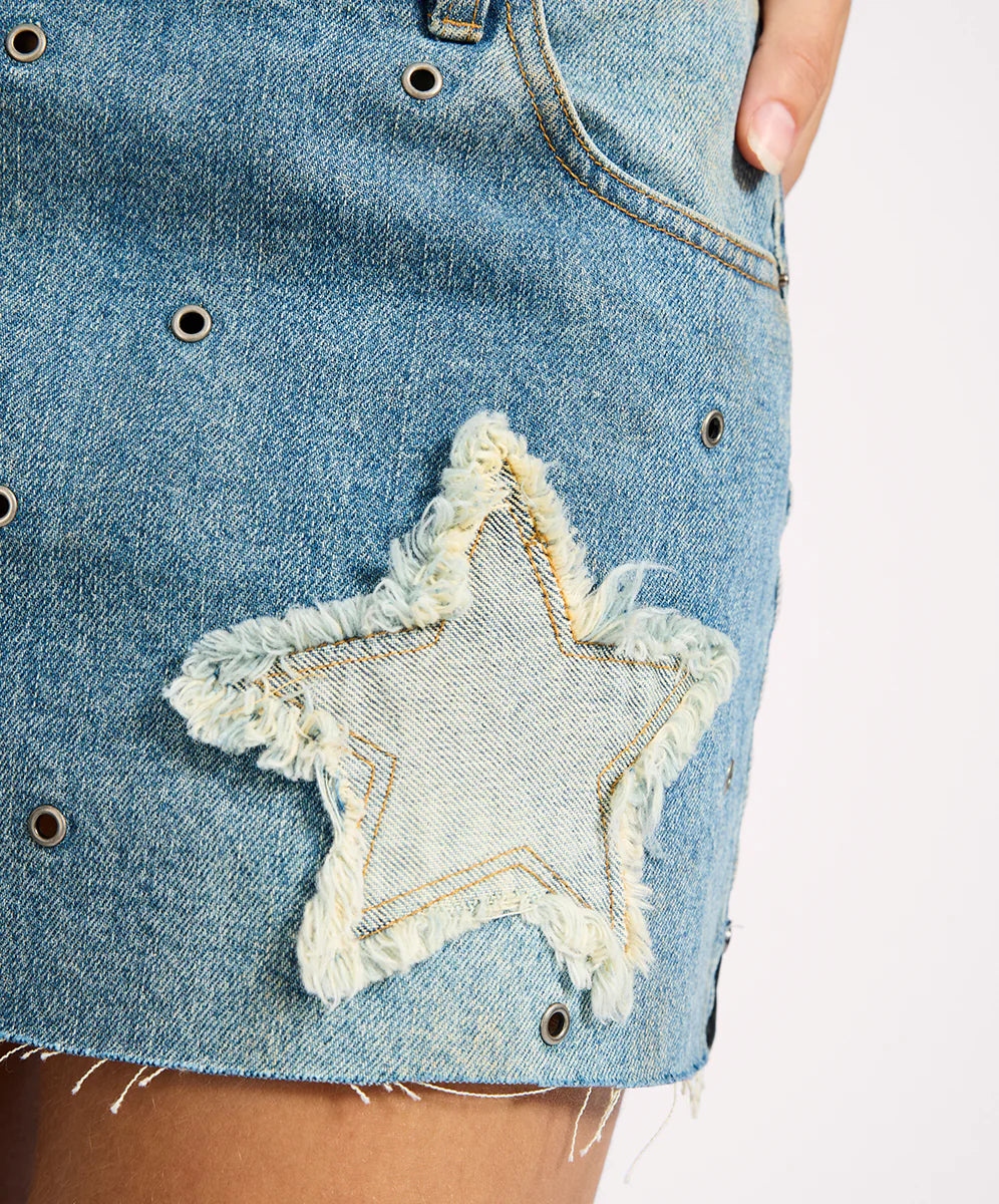Axel Star Low Waist Micro Mini Denim Skirt - Used Blue