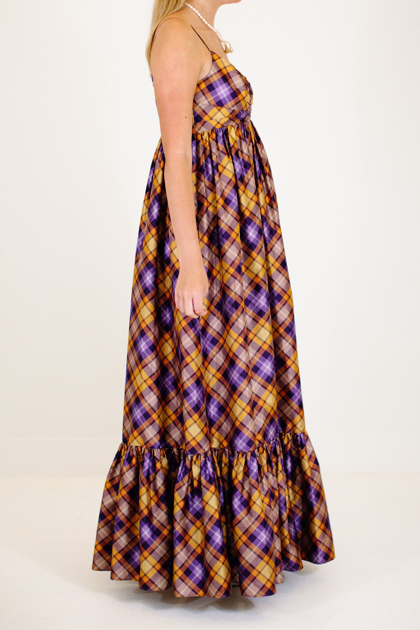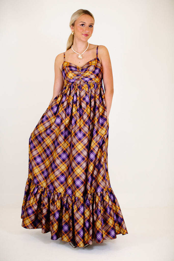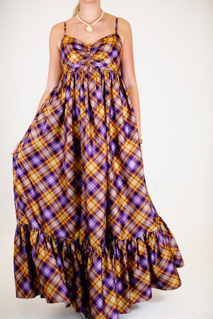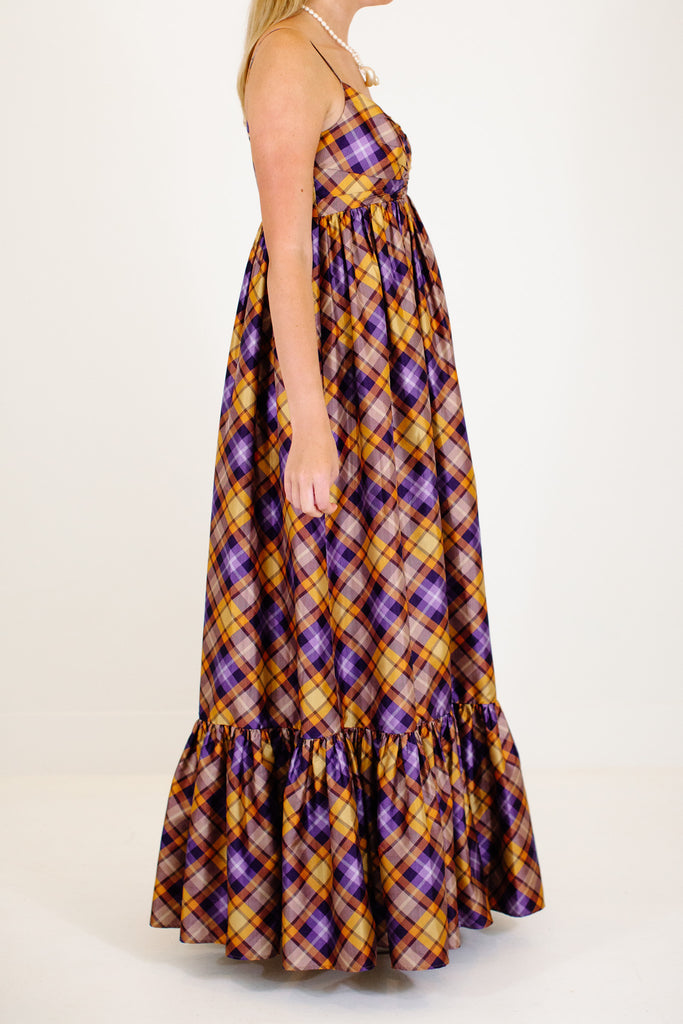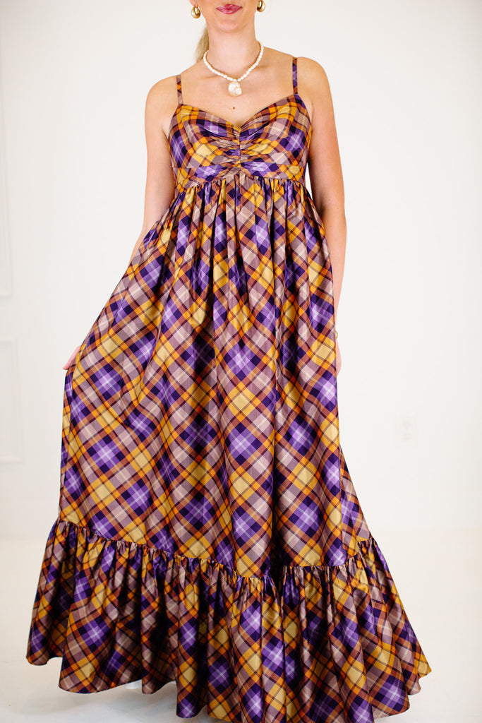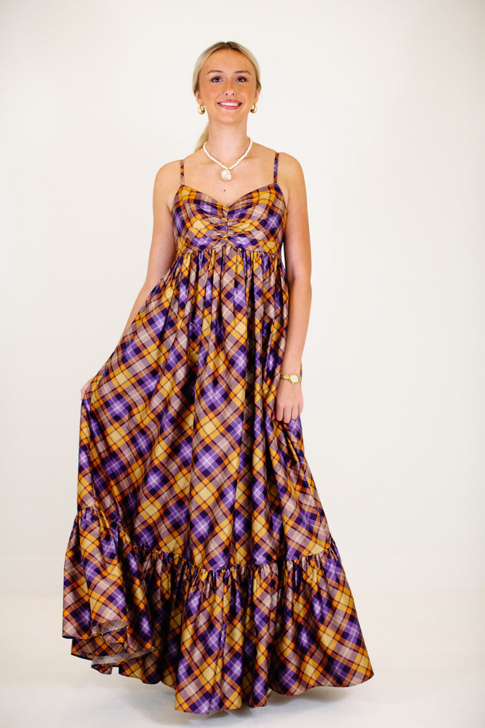 The Ray Maxi Dress - Orange/Purple Plaid