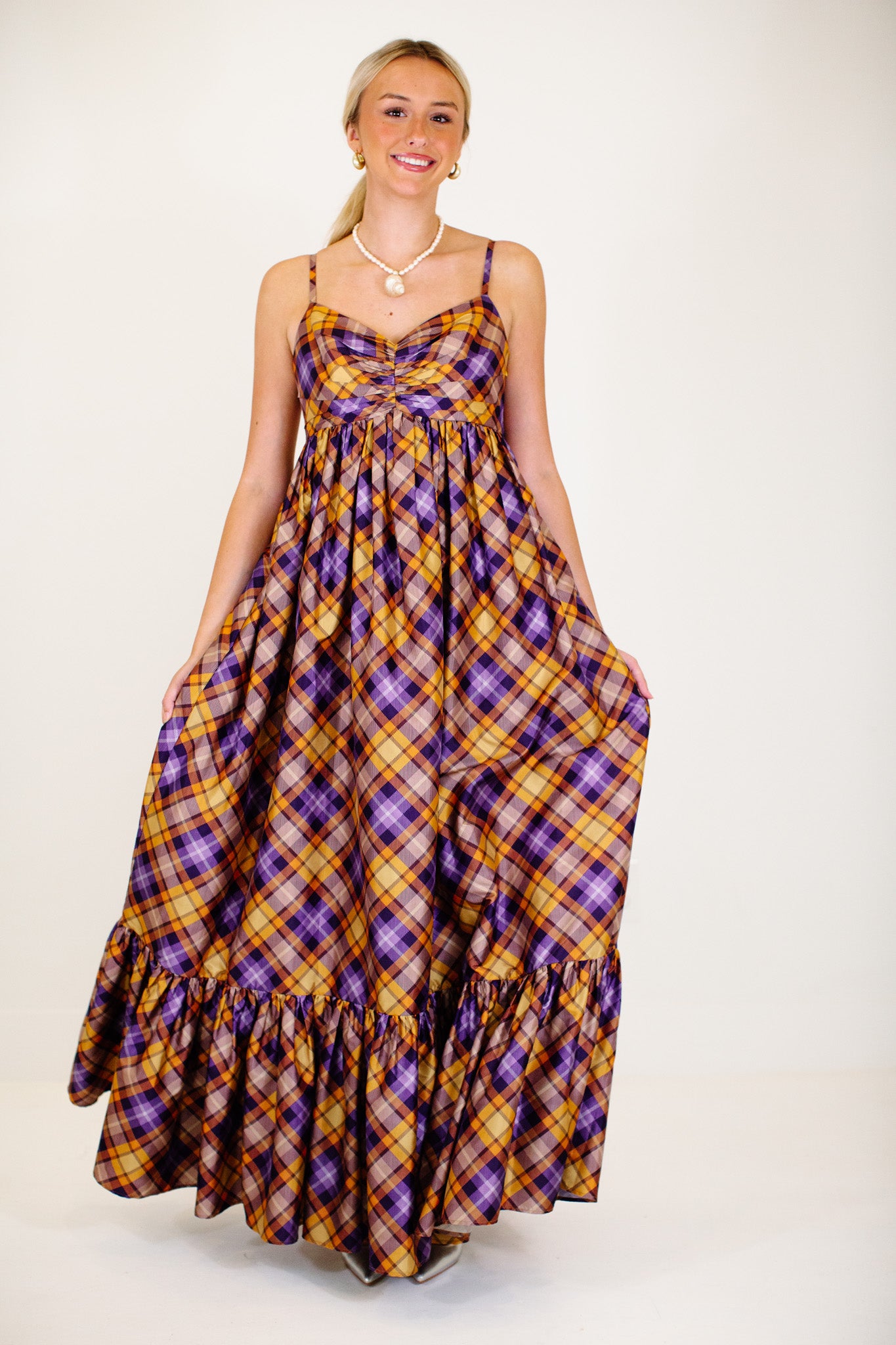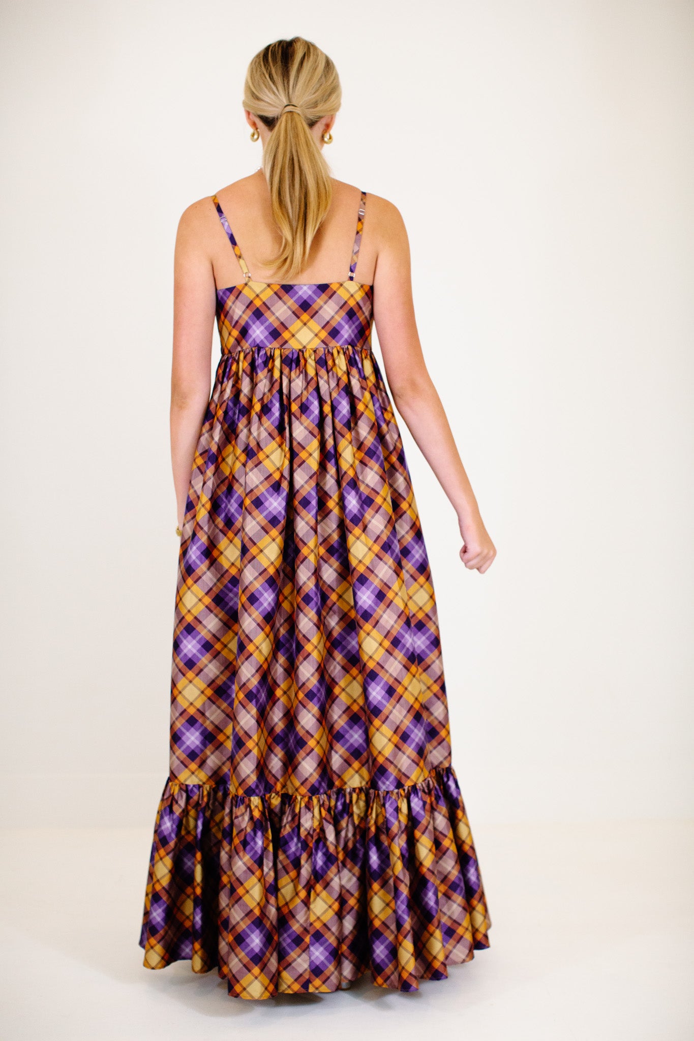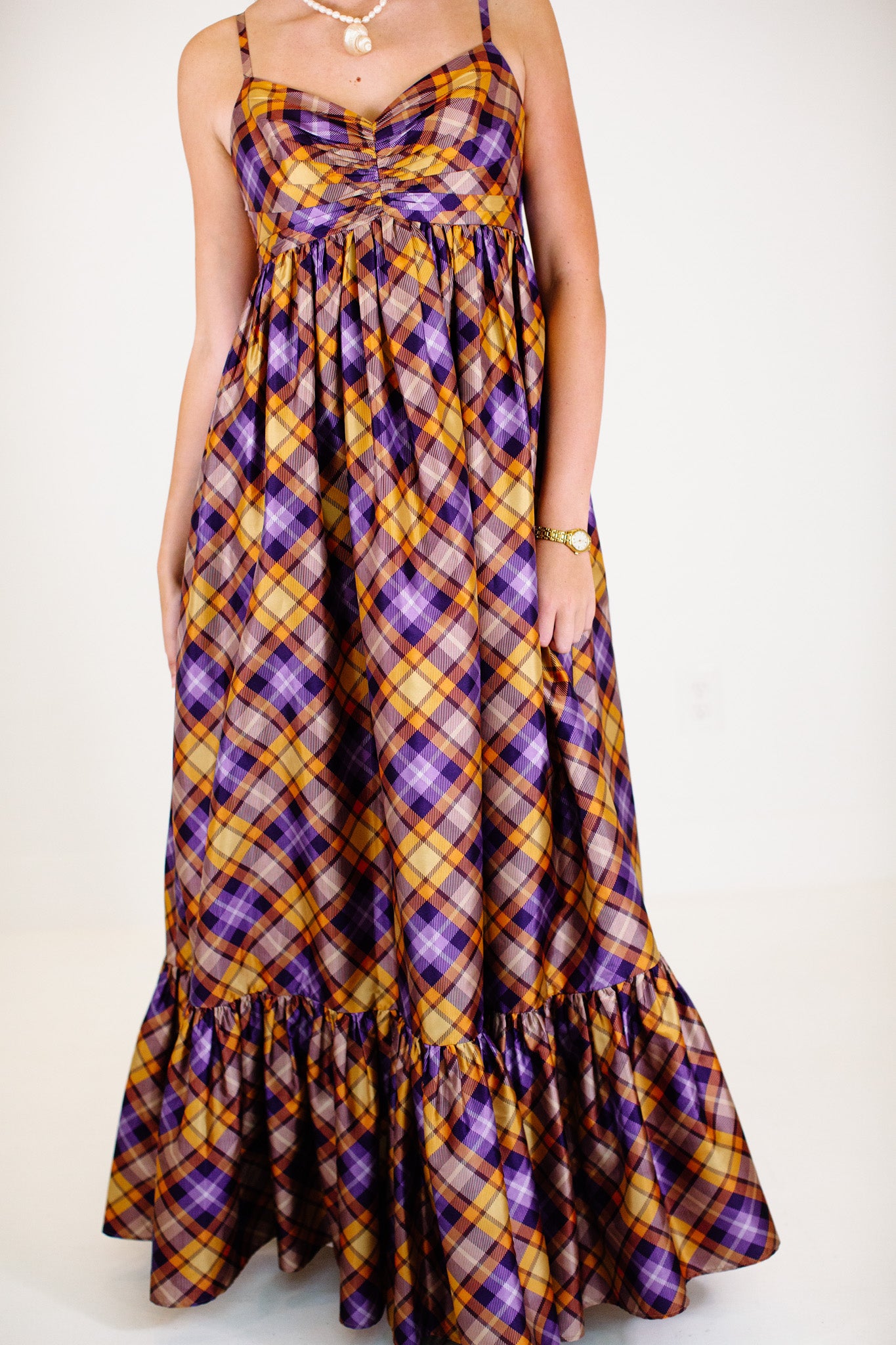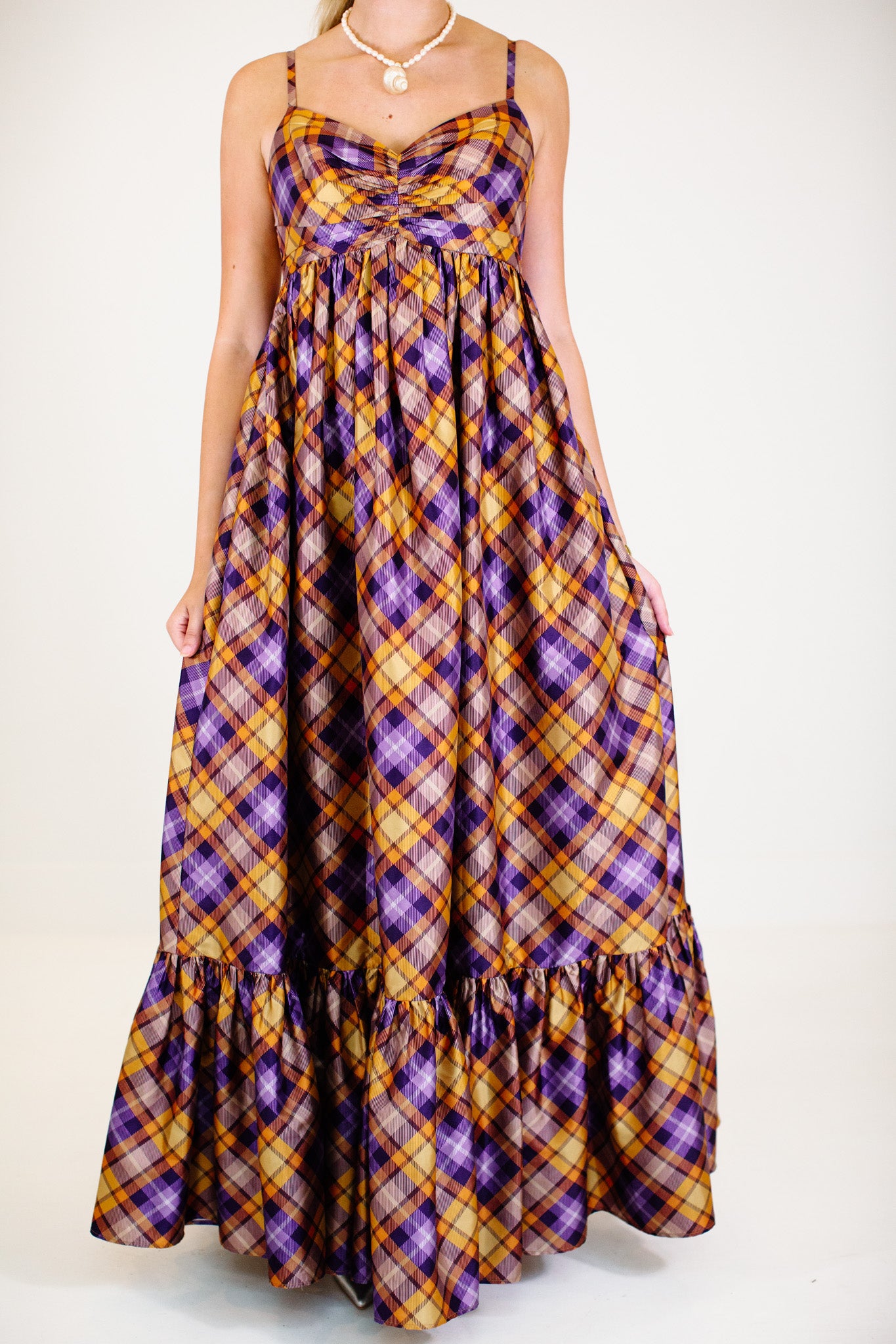 The Ray Maxi Dress - Orange/Purple Plaid
